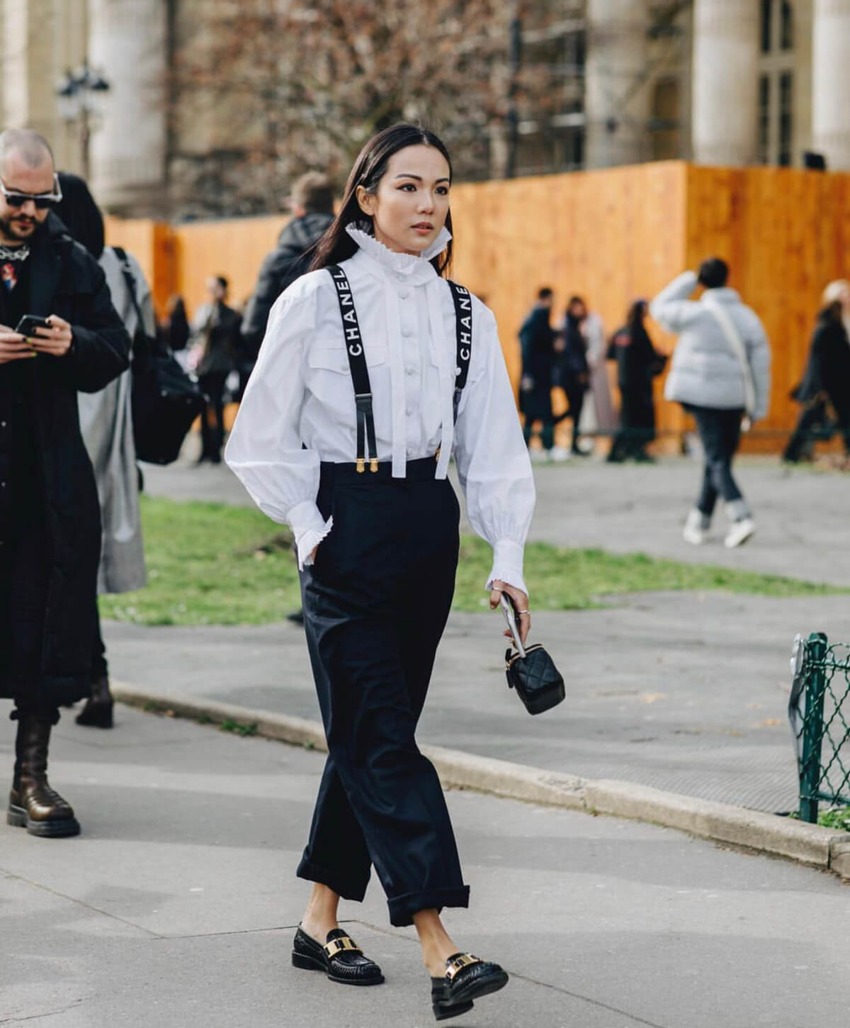 Η σαλοπέτα με τις αποσπώμενες τιράντες: σε περίπτωση που δεν έχετε το συγκεκριμένο fashion item στην ντουλάπα σας, μπορείτε άνετα να το δημιουργήσετε, προσθέτοντας απλά δύο τιράντες. Εύκολο και βολικό κόλπο για να φορέσετε το ίδιο παντελόνι αλλιώς.