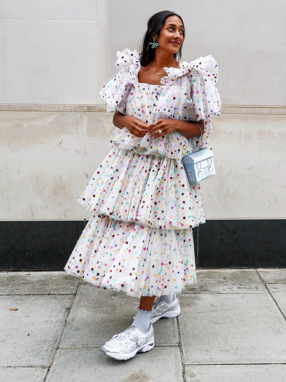 Αποδείξτε ότι το θρυλικό σας ζευγάρι chunky sneakers μπορεί να απογειώσει ακόμα και τα πιο υπερβολικά κοριτσίστικα φορέματα. Με την τόλμη να συνδυάσετε τα αντίθετα στοιχεία, δημιουργήστε μια εμφάνιση που συνδυάζει την αθωότητα με τη νεανική ενέργεια, αφήνοντας μια ανεξίτηλη εντύπωση πίσω σας.