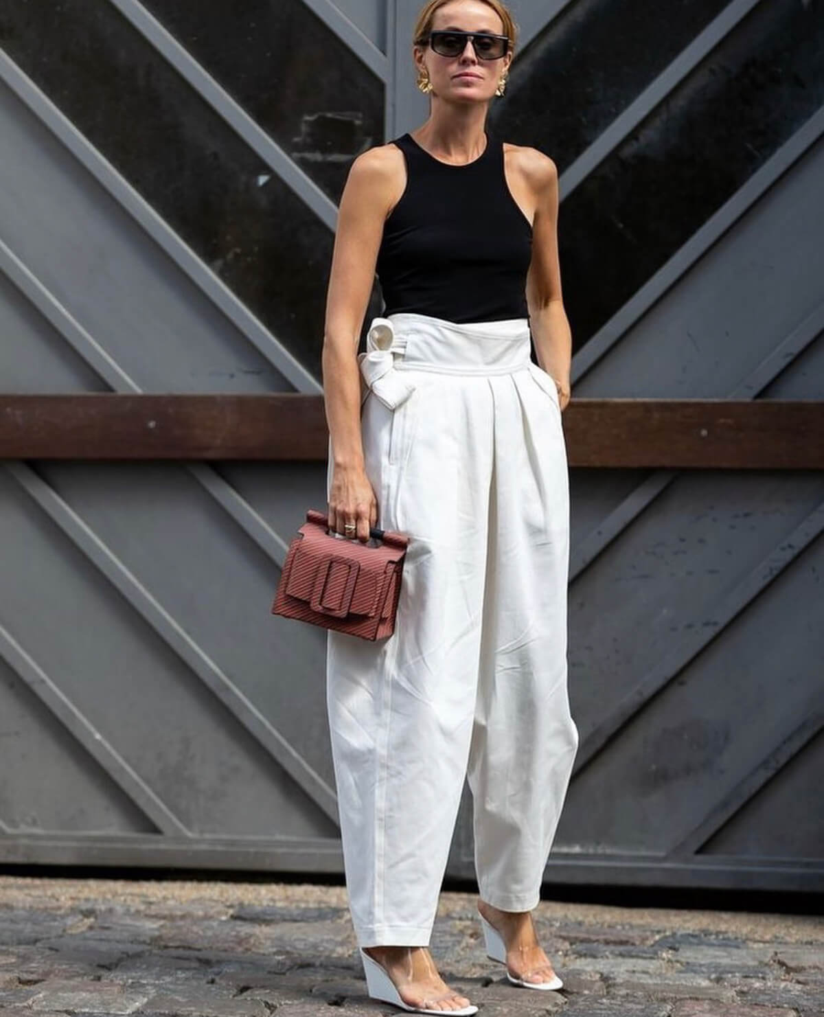 Στενό πάνω, oversized κάτω: αν θέλετε να παίξετε με τις αναλογίες και τα σχήματα, δώστε όγκο στο κάτω μέρος του look με ένα baggy παντελόνι σε oversized γραμμή και αναδείξτε το επάνω με ένα στενό κορμάκι. Η τέλεια αντίθεση δημιουργεί αν μη τι άλλο, ενδιαφέρον.