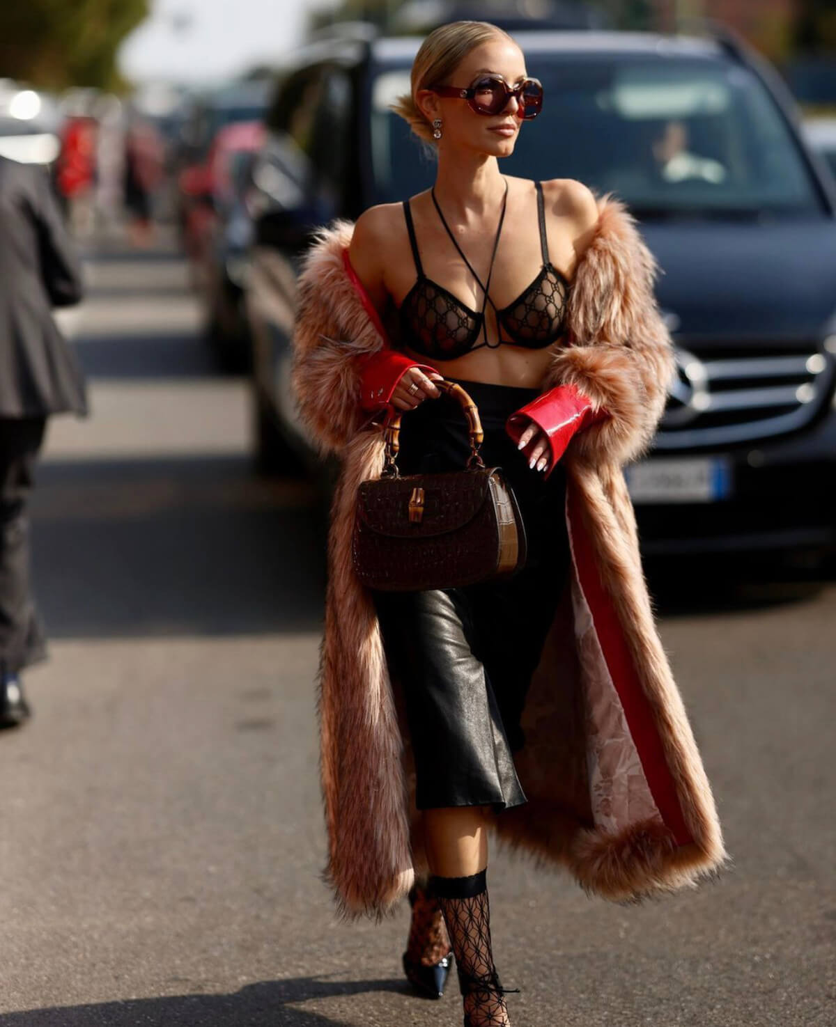 Faux but luxurious: τίποτα πάνω σε ένα outfit που προορίζεται για Εβδομάδα μόδας δεν πρέπει να φωνάζει faux. Εκτός κι αν πρόκειται για τη συνθετική γούνα, η οποία υποστηρίζει έναν πιο βιώσιμο τρόπο ένδυσης.