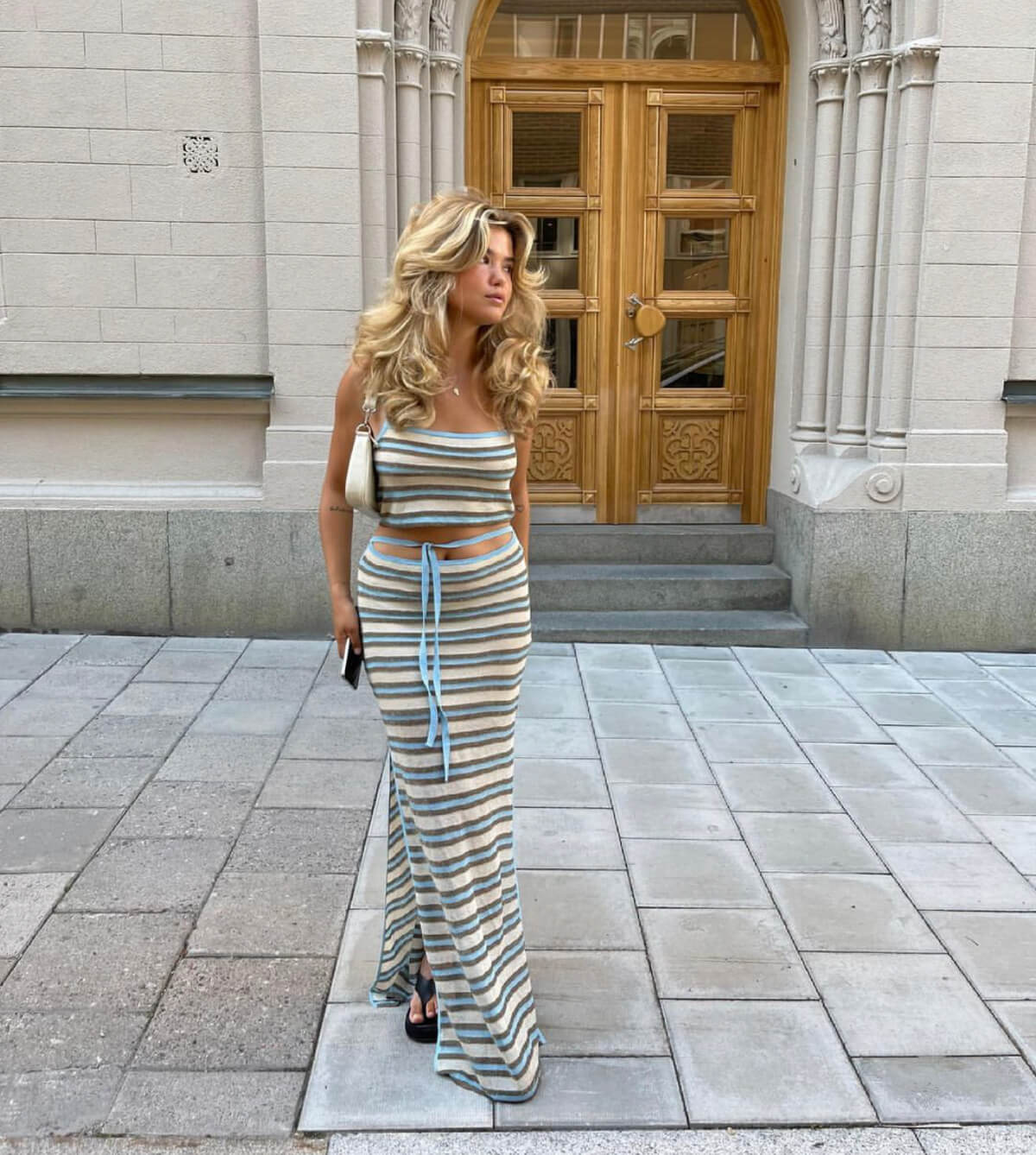 Maxi and easy: ενώ λοιπόν, άλλα Scandi girls θα επέλεγαν να φορέσουν ένα ποδηλατικό κολάν, ή μια χυτή μονόχρωμη παντελόνα, η Matilda Jerf ποντάρει στις ρίγες, στα total set και στα ευκολοφόρετα υφάσματα και το αποτέλεσμα είναι εξαιρετικό.