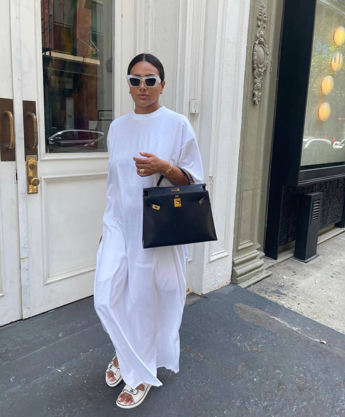 Κυριακή με cool, μακό διάθεση: και μάξι φόρεμα σε στιλ t-shirt που δεν χρειάζεται πολλά για να εντυπωσιάσει. Το summer athleisure είναι αυτό ακριβώς που χρειαζόμαστε για να γίνουν τα καλοκαίρια μας πιο δροσερά και άνετα και ναι, μπορούμε να το φοράμε μια ολόκληρη εβδομάδα ασταμάτητα!