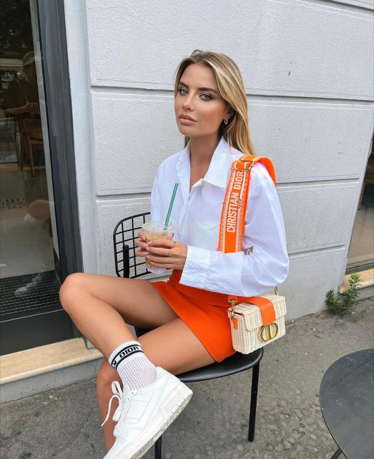 Σάββατο με μίνι και χρώμα: και μάλιστα με… πορτοκαλί χρώμα! Φορέστε κοντά καλτσάκια και μια μίνι φούστα και απολαύστε το Σάββατο με το ίδιο outfit από το πρωί ως το βράδυ, απλά αλλάζοντας παπούτσια!