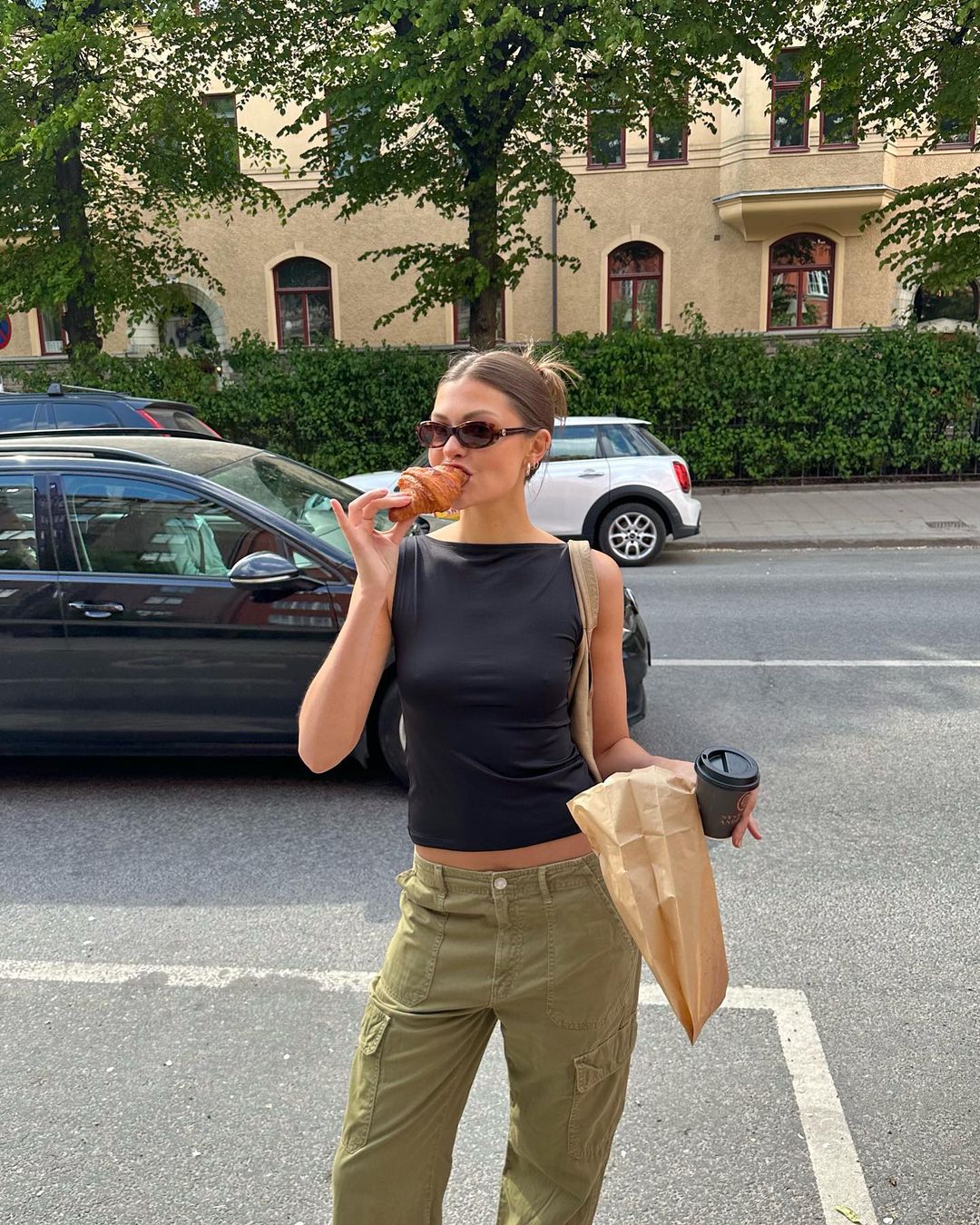 To πρωί, ένας τρόπος να φορέσετε το cargo είναι με μαύρο τοπ και κλασικά converse.