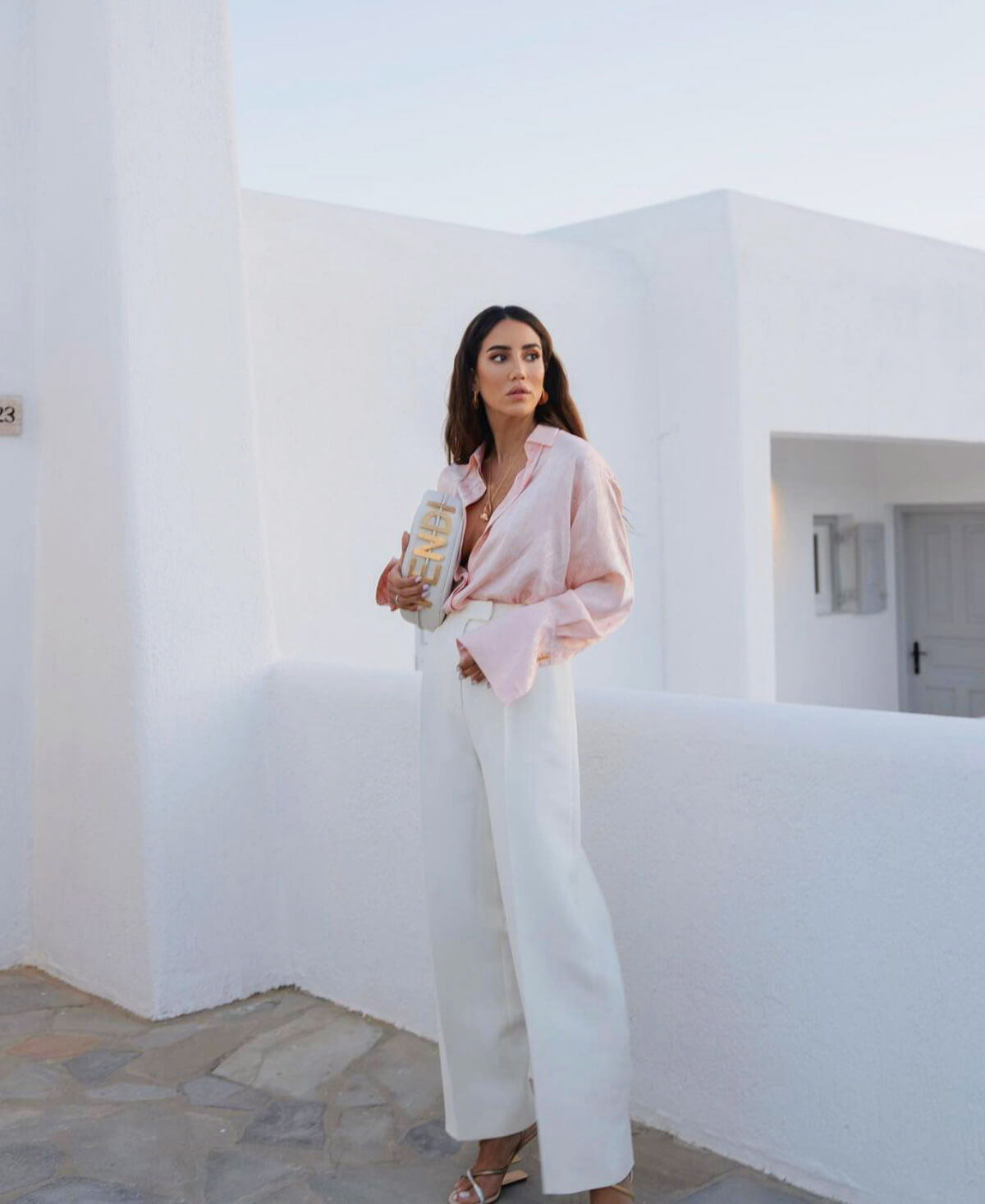 Φορέστε μια χυτή λευκή παντελόνα: καθώς, όχι μόνο είναι σικάτη, αλλά και απολύτως δροσερή. Το αγαπημένο item της παριζιάνικης γκαρνταρόμπας και προσωπικά χιλιοφορεμένο! Εμείς, θα προτείναμε να το συνδυάσετε με ψηλοτάκουνα παπούτσια για έξτρα θηλυκότητα, ωστόσο και τα flat σανδάλια αρχαιοελληνικού τύπου ταιριάζουν άψογα.