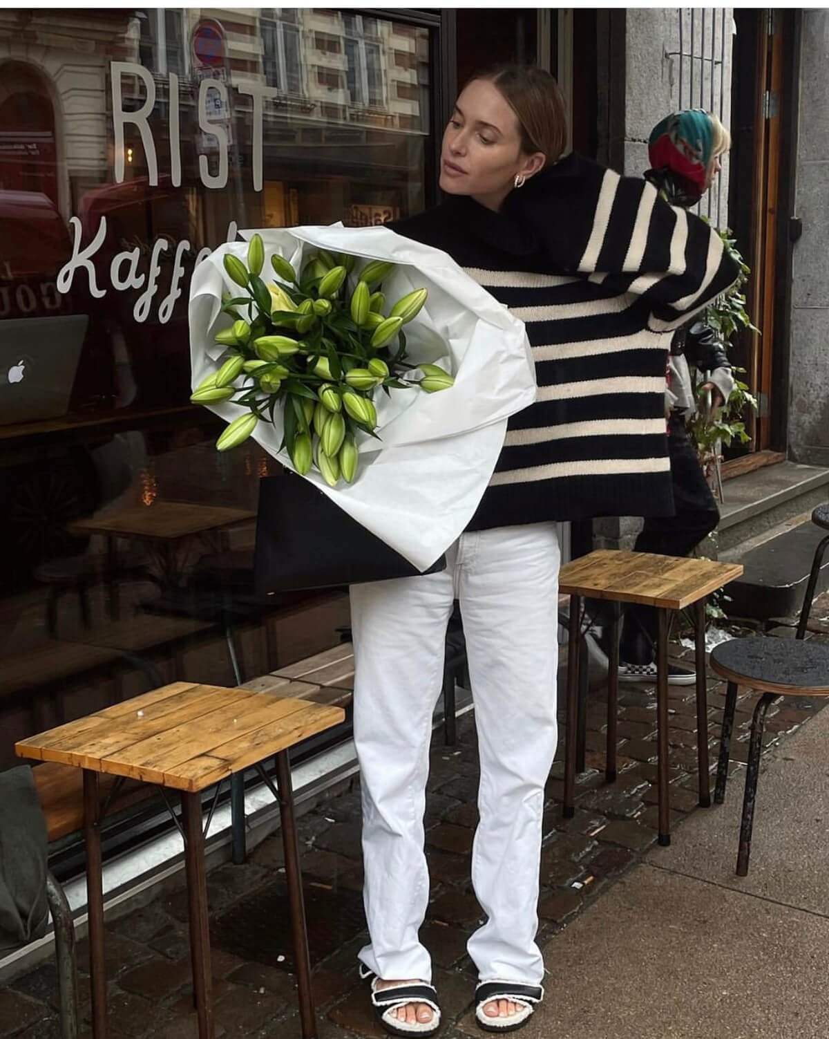 Συνδυάστε το λευκό παντελόνι με μαρινιέρα: έχετε δει κάτι πιο κομψό; Εμείς θα απαντήσουμε πως όχι, αφού ο συγκεκριμένος συνδυασμός διατηρεί μια ξεχωριστή θέση στη ντουλάπα και στην καρδιά μας!