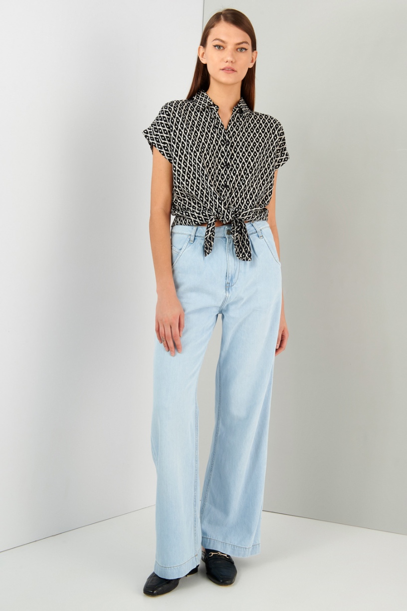 Ένα ψηλόμεσο τζιν που αγκαλιάζει τη μέση, θα δώσει την απαραίτητη θηλυκή πινελιά στο ντύσιμό σας. Δέστε το πιο ανάλαφρο πουκάμισό σας από πάνω, δημιουργώντας έναν κόμπο ή κρατήστε το ανοιχτό με το μαγιό από μέσα αν πάτε για φαγητό ακριβώς μετά τη θάλασσα. Τελειοποιήστε το look με ένα σετ από φλατ σανδάλια και bon appétit.