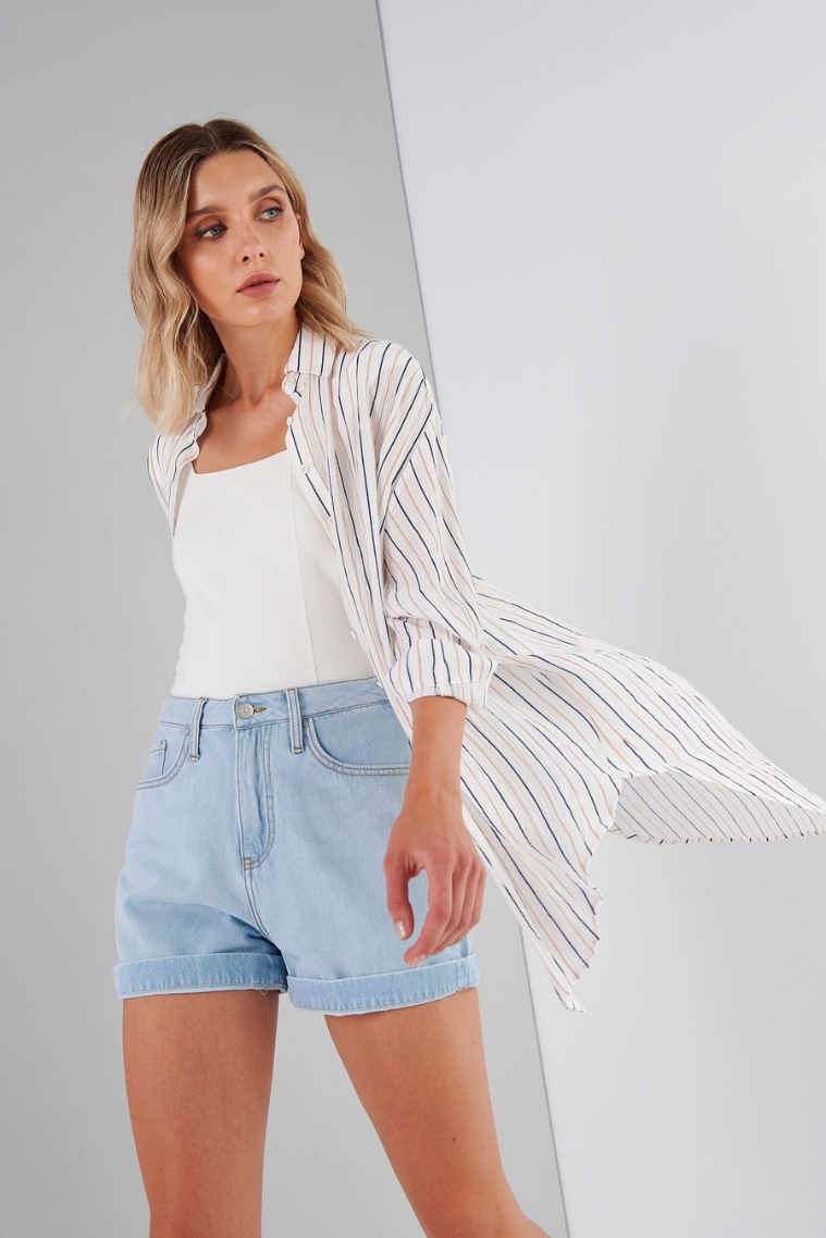 Τι καλύτερο από το να απολαύσετε τον καφέ ή τον χυμό σας με ένα άνετο λινό σορτς στα χρώματα του αιγαίου και το αγαπημένο σας t-shirt από μέσα. Ολοκληρώστε το look με ένα όμορφο ζευγάρι εσπαντρίγιες και τα αγαπημένα σας κοσμήματα για να δώσετε λάμψη στην ημέρα σας.