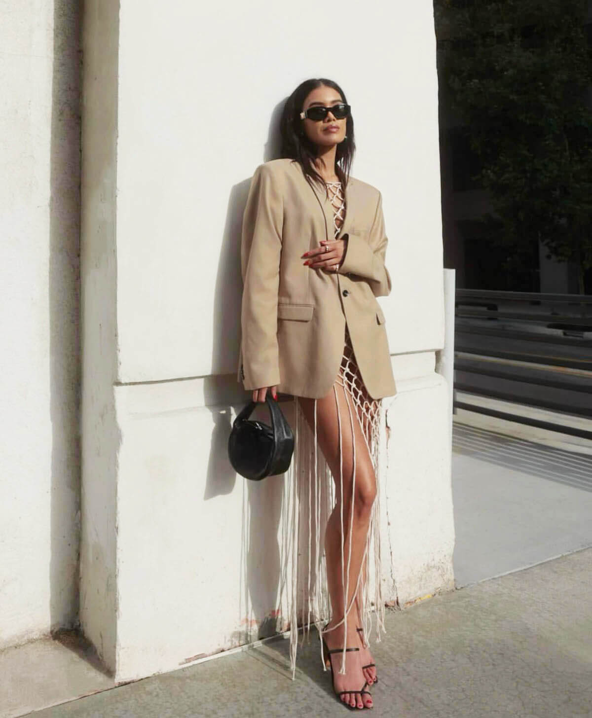 Fringe dress με λεπτεπίλετα σανδάλια: ένα φόρεμα με κρόσια αναδεικνύεται πολύ πιο όμορφα όταν συνοδεύεται από κομψά σανδάλια με λεπτά λουράκια κι επίσης λεπτό τακούνι. Αποφύγετε τα χοντροκομμένα παπούτσια και τις πλατφόρμες γιατί δεν αρμόζουν καθόλου στον χαρακτήρα του συγκεκριμένου φορέματος.