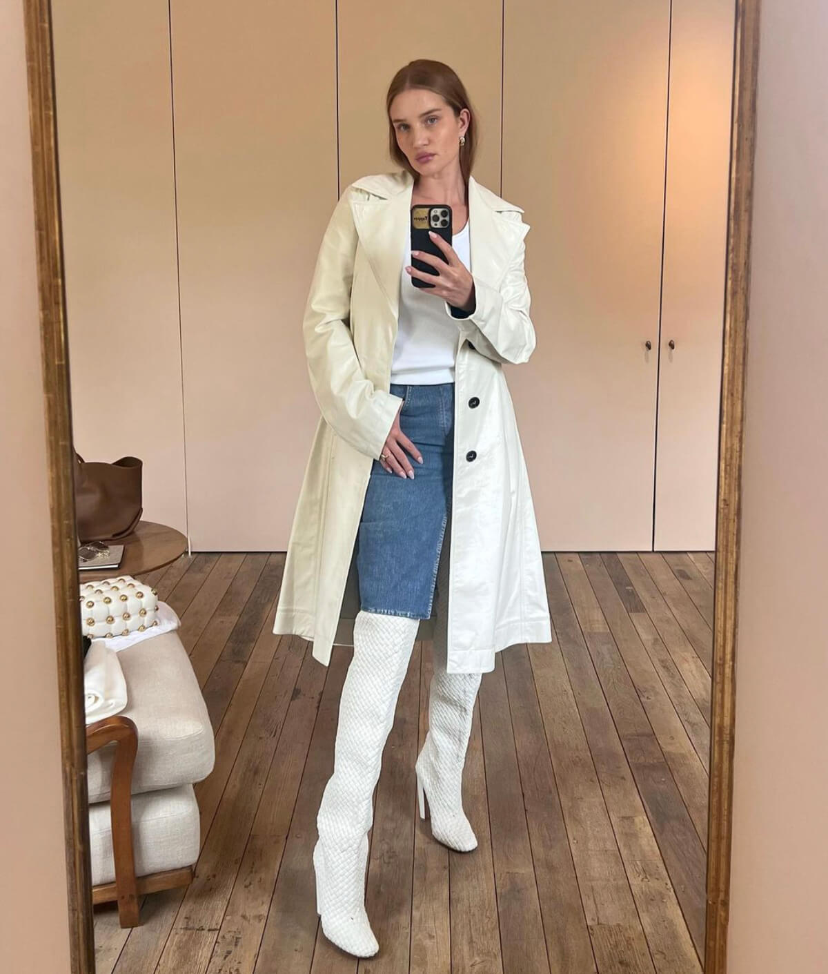 Λευκή και με βερμούδα: ένα look που μπορεί να σταθεί άνετα τόσο στο street style, όσο και στο γραφείο. Η Rosie Huntington μας δίνει τον πιο τέλειο συνδυασμό με βάση το τζιν και πρωταγωνίστρια τη λευκή και παγωμένη, δερμάτινη καμπαρντίνα.