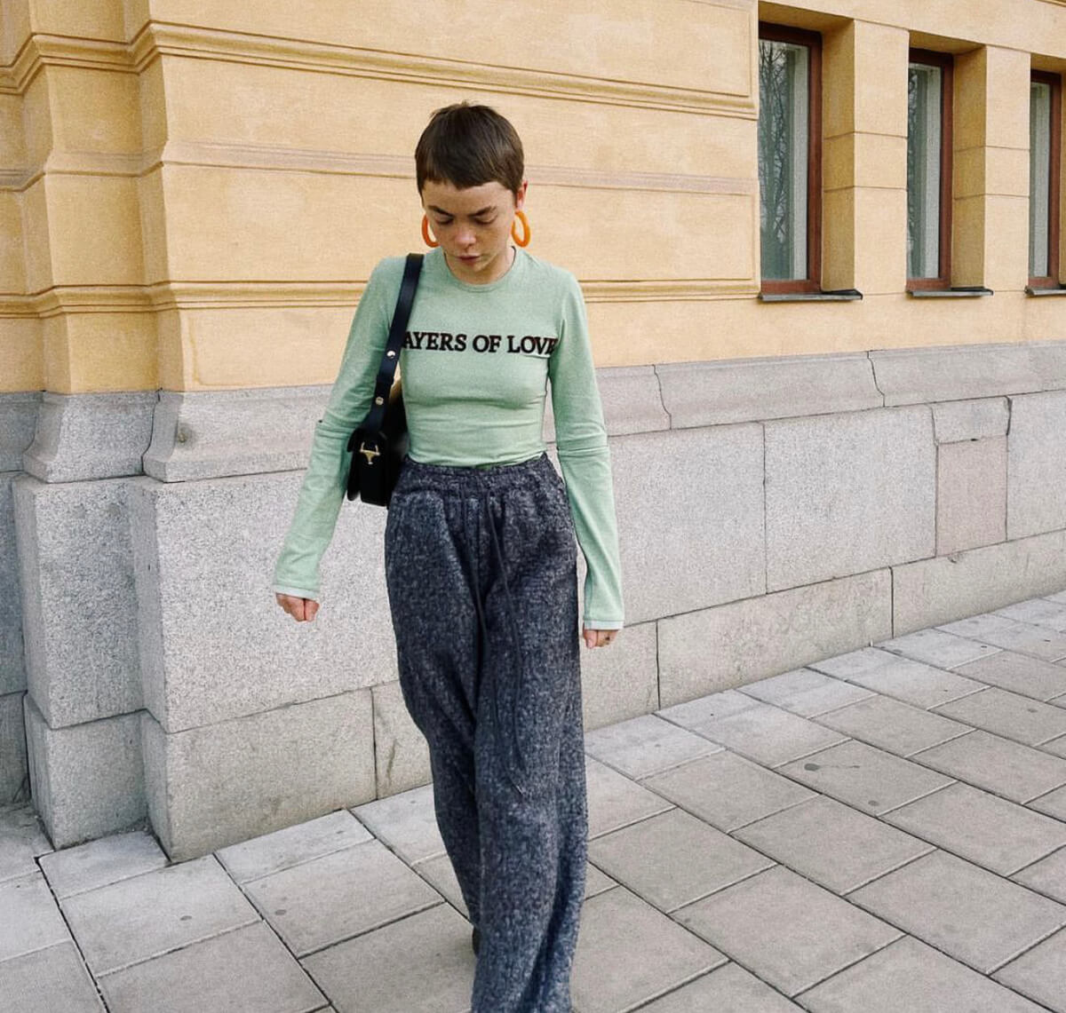 Συνδυασμένα με oversized παντελόνια: καθώς τα συγκεκριμένα τοπ είναι ως επί το πλείστων στενά και μακό, θα πρέπει να δώσετε όγκο και ενδιαφέρον στο κάτω μέρος. Διαφορετικά, το look όντως θα δείχνει εφηβικό και αυτό μάλλον είναι κάτι που δεν θα το θέλετε, εκτός εάν σας αρέσει και το υποστηρίζετε.
