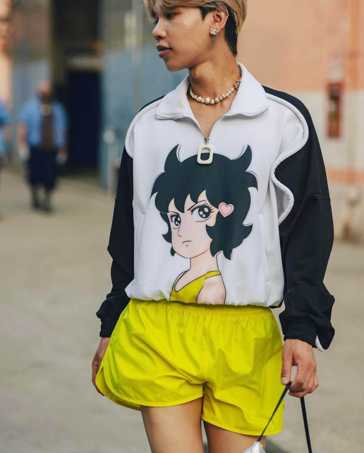 Animated tracksuit: ένας φρέσκος και παιχνιδιάρικος τρόπος για να φορέσετε το συγκεκριμένο trend είναι να επιλέξετε ένα total set σε αθλητική μορφή. Τα animated σχέδια είναι αυτή τη στιγμή ιδιαίτερα δημοφιλή, αφού τα εντοπίσαμε μέχρι και στην Εβδομάδα μόδας του Μιλάνου.