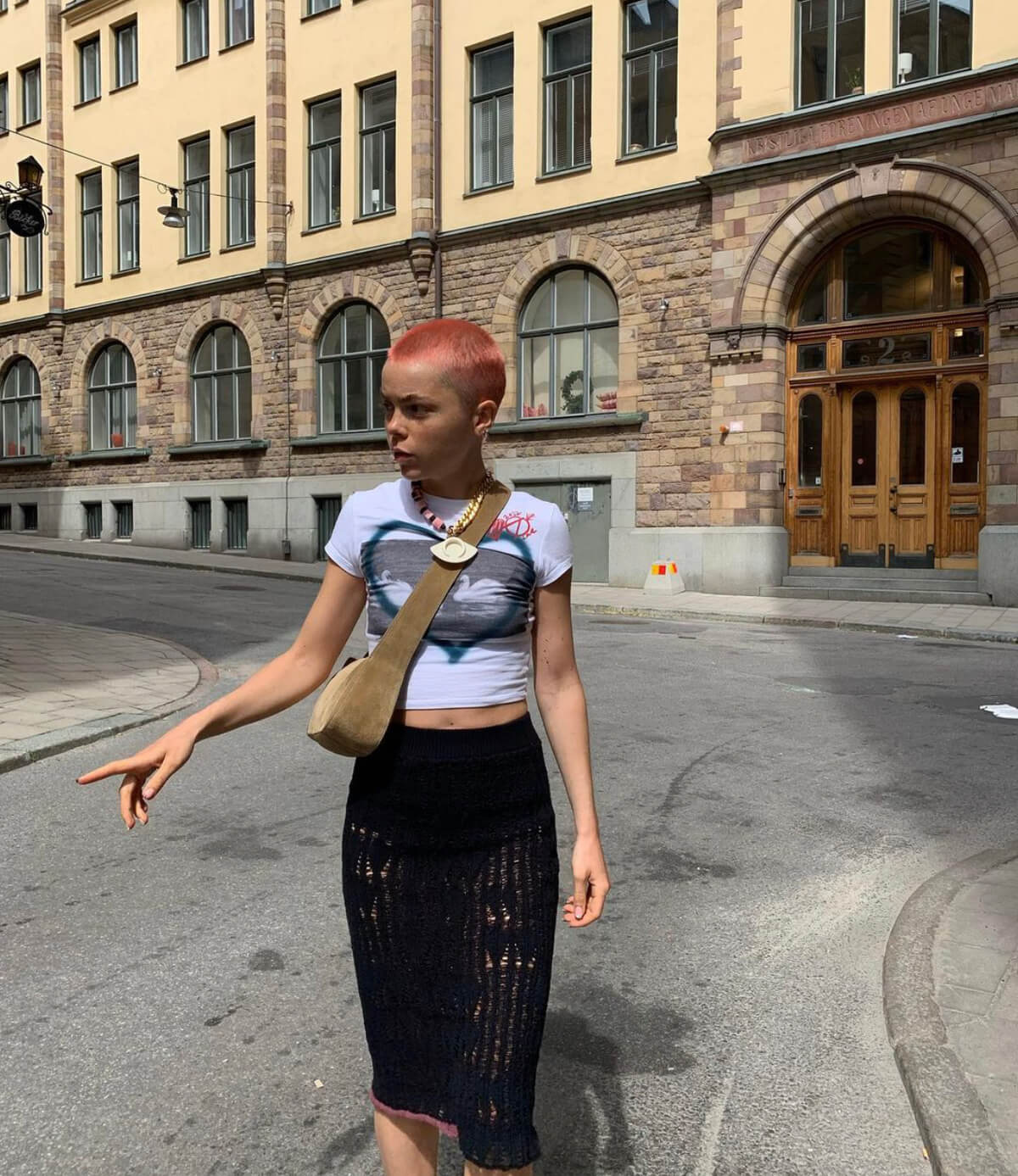 Ενισχύοντας την 00s τάση: απλά φορώντας ένα μακρυμάνικο στενό τοπ κάτω από το printed t-shirt. Με αυτόν τον τρόπο θα δημιουργήσετε ένα look βγαλμένο από τη δεκαετία του 2000, το οποίο μπορείτε να στολίσετε λίγο παραπάνω με statement αξεσουάρ του σήμερα.