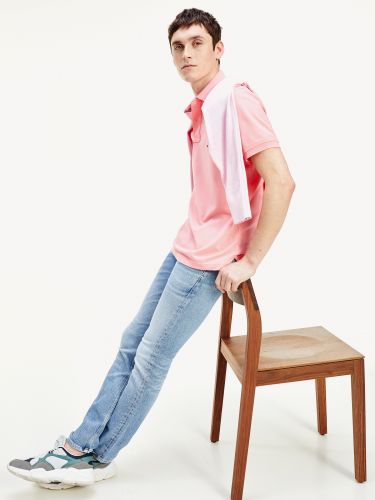 Polo μπλούζα πικέ: Ανδρικό polo φτιαγμένο από εξαιρετικά απαλό βαμβάκι που διατηρεί άριστα την φόρμα του και πραγματικά ξεχωρίζει. Είναι διαθέσιμο σε τιρκουάζ, indigo, lime, μπλε ρουά, κίτρινο, κόκκινο, πράσινο, και κοραλλί. Για να είστε κομψοί όλη μέρα, συνδυάστε το με λευκό chino TH Flex παντελόνι σε ίσια στενή γραμμή και δερμάτινα sneakers με το μονόγραμμα ΤΗ και σόλα από καουτσούκ.