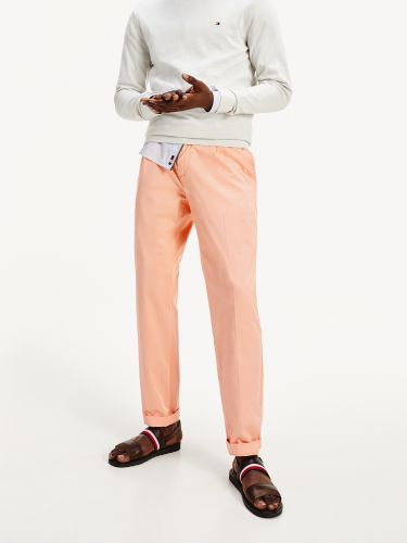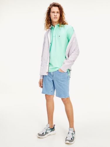 Polo μπλούζα σε regular γραμμή: Κλασικό ανδρικό μπλουζάκι polo διακοσμημένο με το κλασικό σημαιάκι του brand για μια νότα πολυτέλειας σε τιρκουάζ, indigo, μπλε ρουά, και κοραλλί. Φορέστε το με ανοιχτό κοραλλί chino tapered παντελόνι, φτιαγμένο από ελαστικό βαμβάκι με τεχνολογία TH Flex και boat shoes με signature ρίγα στη σόλα τους για να προσθέσετε θαλασσινό αέρα στις καθημερινές εμφανίσεις σας!