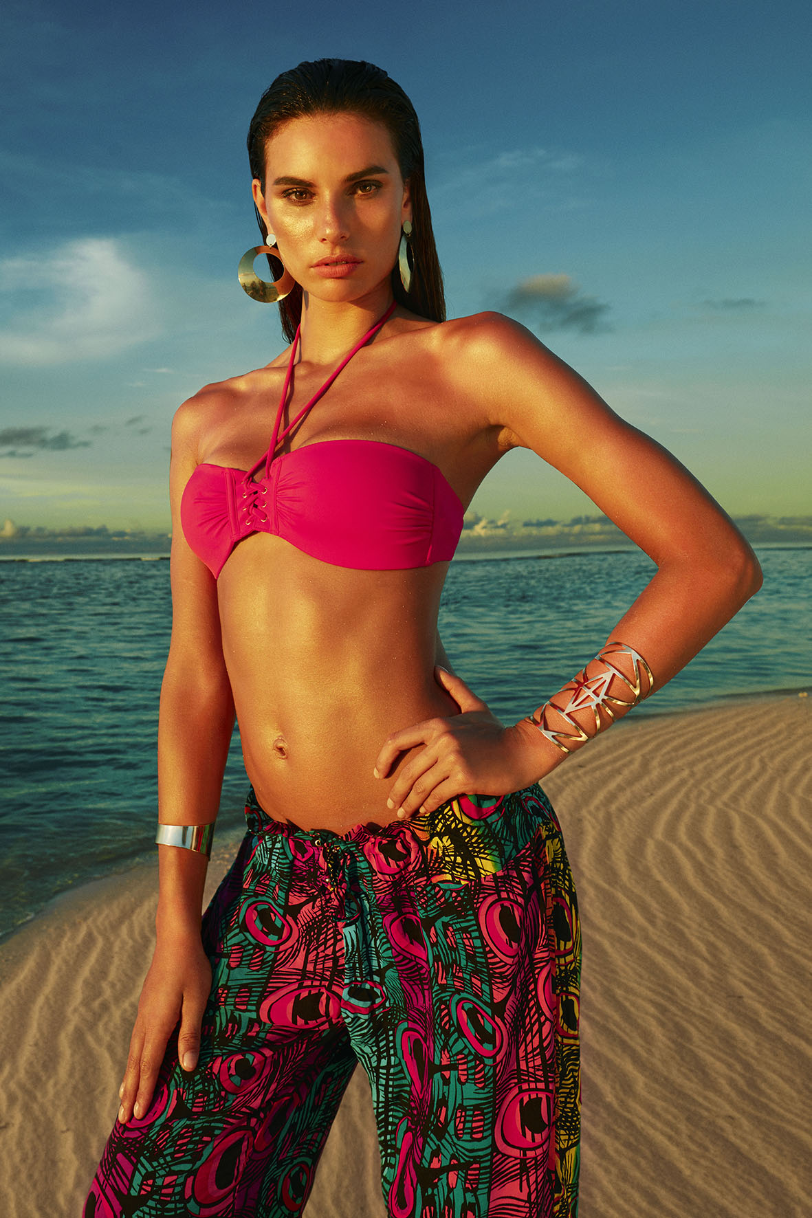 Χρωματικές εκρήξεις, ιδιαίτερα μοτίβα, εκκεντρικά τυπώματα, για τα Brazilian κάτω μέρη αλλά και τρίγωνα και bandeau μπικίνι και φυσικά πανέμορφα trikinis. Maxi φορέματα, παντελόνια, ponchos, ολόσωμες φόρμες και εκπληκτικά καφτάνια ολοκληρώνουν το look μας στην παραλία.