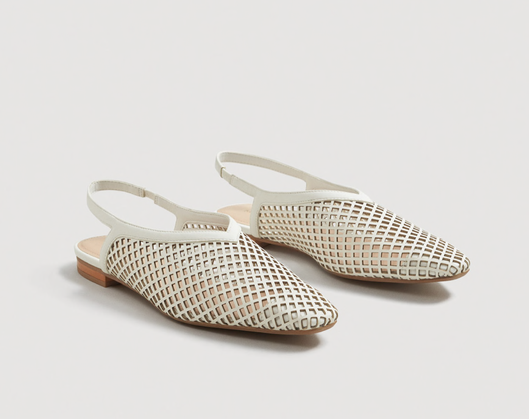 λευκά παπούτσιαΛευκά, διάτρητα παπούτσια από δέρμα, €49.99, μπορείτε να τα βρείτε εδώ.