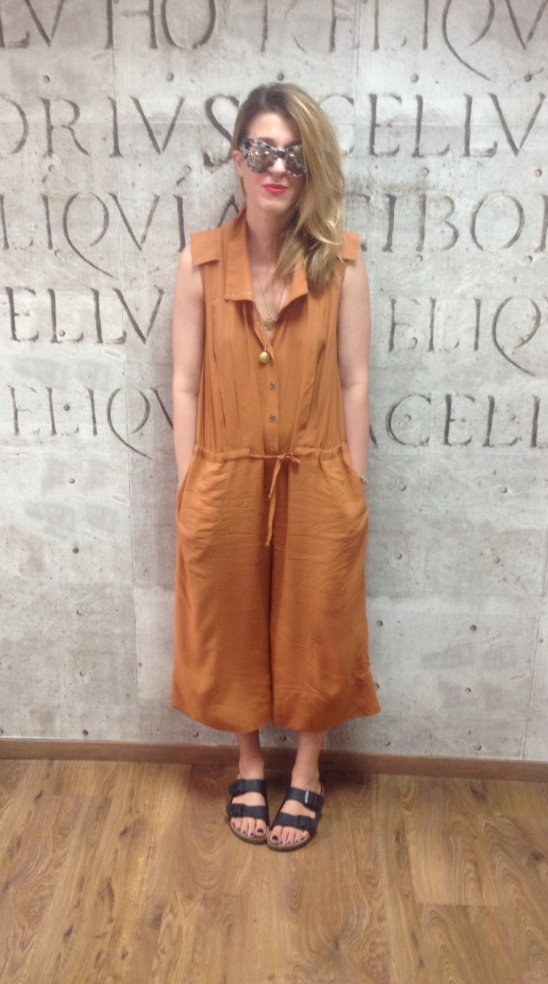 Σήμερα λοιπόν που αποφασίσαμε να τη «στήσουμε στον τοίχο» για ακόμα μία φορά, επέλεξε ένα άνετο σύνολο γιατί όπως χαρακτηριστικά μας είπε, πέρασε όλη της τη μέρα στον δρόμο, και η θερμοκρασία ήταν πραγματικά καυτή. Η ολόσωμη φόρμα της έχει την ελληνική υπογραφή Yiorgos Eleftheriades ενώ τη συνδύασε με ένα ζευγάρι πολύ άνετα σανδάλια Birkenstock. Τα εντυπωσιακά γυλιά ηλίου που φοράει είναι Stella McCartney.