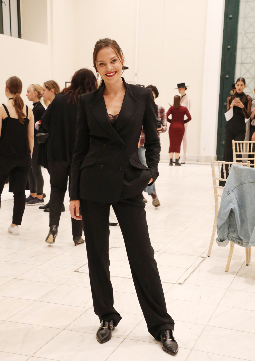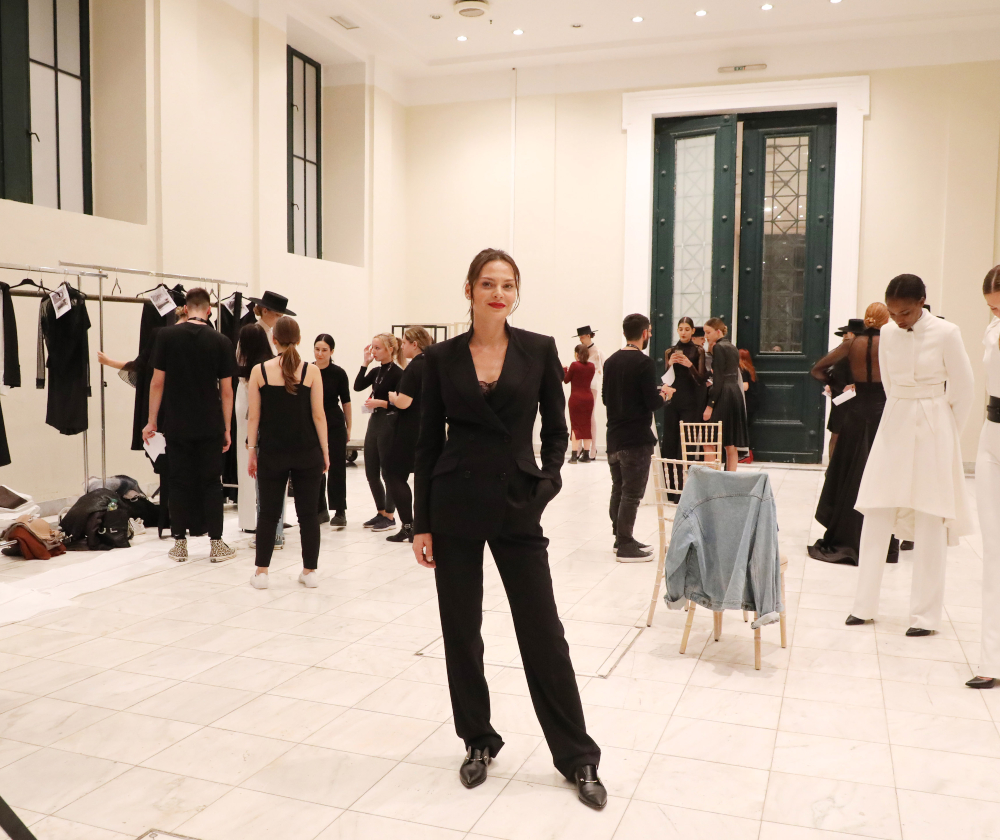Εκτός από τη συλλογή και το fashion show, αυτό που μας ενθουσίασε είναι το σύνολο της σχεδιάστριας. Η Υβόννη Μπόσνιακ επέλεξε να φορέσει ένα μαύρο κοστούμι, το οποίο συνδύασε με ένα μαύρο δαντελένιο lingerie και ένα ζευγάρι μαύρα loafers με χρυσές λεπτομέρειες. Το look της ήταν σούπερ κομψό και chic, αλλά και πολύ θηλυκό.
