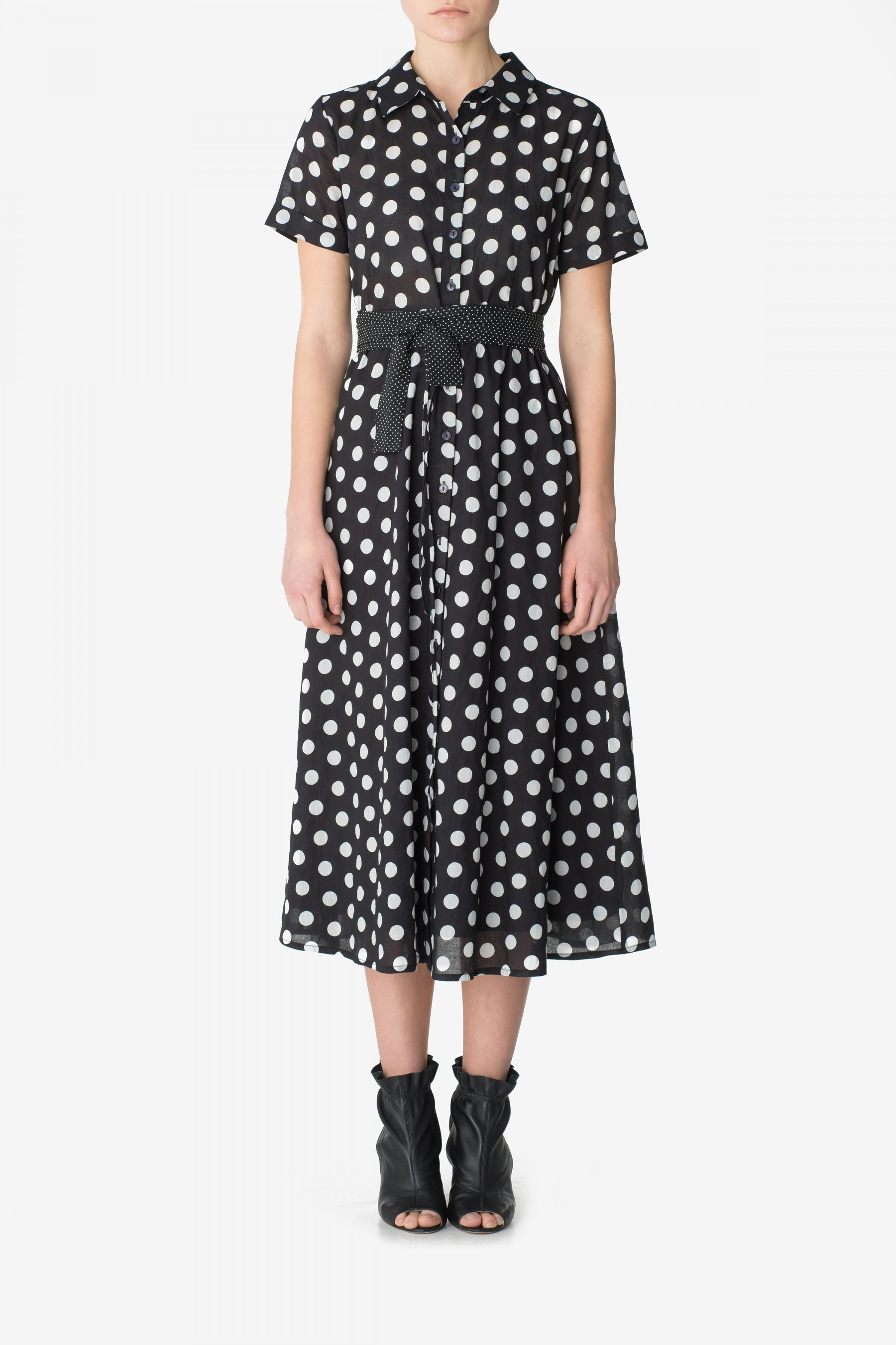 Πουά φόρεμα με ζώνη, μπορείτε να το βρείτε εδώ.