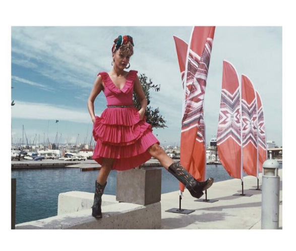 Αυτή τη φορά λοιπόν η Τάμτα επέλεξε ένα από τα αγαπημένα μας κομμάτια από την trend συλλογή των H&M. Ένα πλισέ φούξια φόρεμα, με layers και βολάν και στο μπούστο ήταν το κεντρικό κομμάτι του outfit. Στη μέση της φόρεσε μία πολύ λεπτή ζώνη που τονίζει τη σιλουέτα ενώ το look ολοκλήρωσε με cowboy boots. Δε μπορούμε να μην αναφέρουμε το πολύχρωμο turban και τα σκουλαρίκια της που έδωσαν πιο εξωτική διάθεση στο όλο σύνολο.