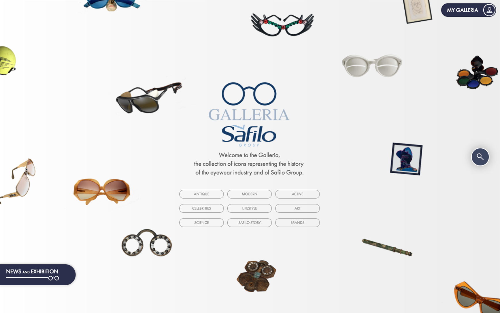 Με το επίσημο ντεμπούτο της στην έκθεση οπτικών MIDO 2017, η www.GalleriaSafilo.com είναι το νεότερο ψηφιακό μουσείο στον κόσμο αφιερωμένο εξ ολοκλήρου στα οπτικά, την ιστορία και την τεχνολογία τους, αλλά και τη διαχρονική τους γοητεία. Ένα έργο που αναδεικνύει το ρόλο του Safilo Group ως ιστορικό ηγέτη και ιδρυτή της Ιταλικής παράδοσης κατασκευής Οπτικών, πρωτοπόρο της βιομηχανίας, αλλά και ως εταιρεία που κατέχει μία από τις σημαντικότερες ιδιωτικές συλλογές Οπτικών στον κόσμο, που δημιουργήθηκαν κομμάτι-κομμάτι εδώ και πολλά χρόνια στη μνήμη του ιστορικού ιδιοκτήτη του, Guglielmo Tabacchi.