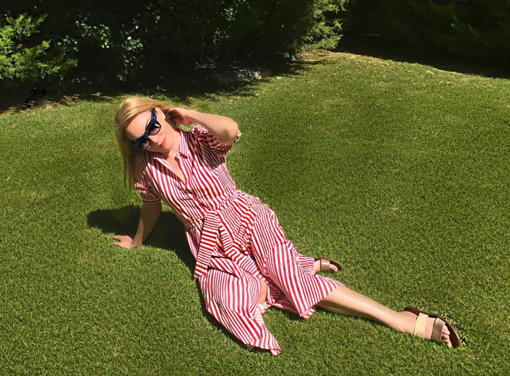 Στη δεύτερη κατηγορία ανήκει και το shirt dress που επέλεξε σε πρόσφατη εμφάνιση που μοιράστηκε με τους fans της στο Instagram. Η δημοσιογράφος πόζαρε λοιπόν με ένα midi shirt dress με κόκκινες και λευκές ρίγες το οποίο μάλιστα έχει και ασορτί ζώνη στη μέση για να κολακεύει ακόμα περισσότερο τη σιλουέτα. Μην ξεχνάτε ότι οι κάθετες ρίγες ψηλώνουν και αδυνατίζουν το σώμα οπότε αν σας αρέσει το look της και θέλετε να «κρύψετε» μερικούς πόντους, είναι ιδανικό για να το αντιγράψετε.