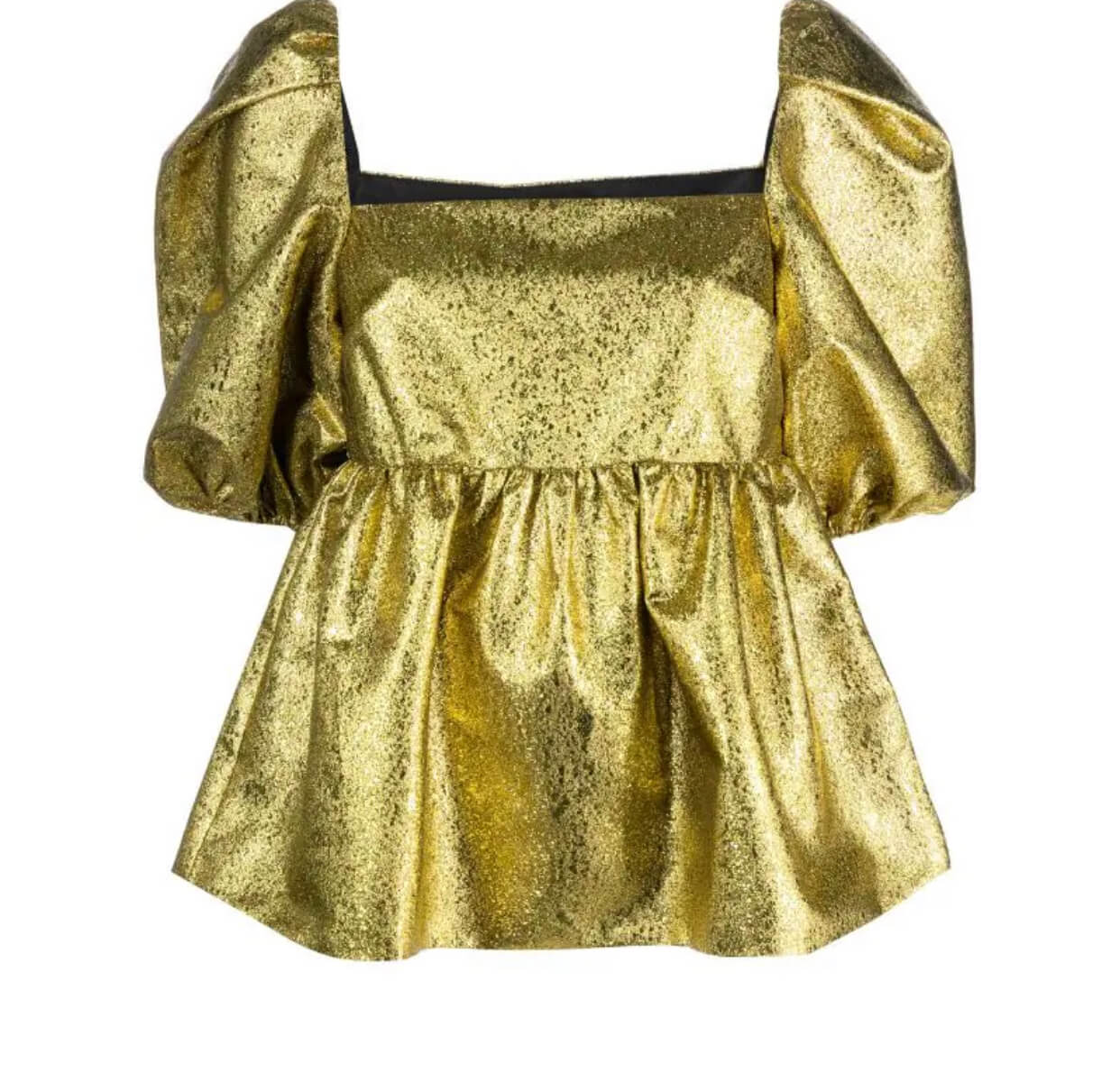 Το χρυσό κοντομάνικο peplum top είναι η απόλυτη επιλογή για μια γιορτινή εμφάνιση που θα ξεχωρίσει. Το φοράμε είτε με ήσυχα κομμάτια, όπως ένα λευκό cigarette παντελόνι, ή τολμάμε να υπερβάλουμε με έξτρα λάμψη.