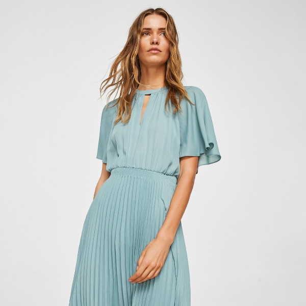 Είναι Mango και έχει τέλειο χρώμα. Μάλιστα η γραμμή του υπόσχεται πως θα κρύψει κάθε ατέλεια, μιας και το πάνω μέρος του είναι μεν χαλαρό αλλά όχι φαρδύ, έχει μία νοητή ζώνη στη μέση, που σημαίνει ότι κολακεύει ιδιαίτερα τη σιλουέτα, ενώ το κάτω μέρος του είναι πλισέ και σε γραμμή άλφα, άρα ακόμα και αν έχετε κάποιους επιπλέον πόντους στην περιφέρεια, δε θα το καταλάβει κανείς. Το χρώμα του είναι τέλειο και ταιριάζει με αξεσουάρ ασημί, ή χρυσά αλλά ακόμα και με άλλα σε έντονο χρώμα, για εσάς που είστε τολμηρή και θέλετε να κάνετε ένα ενδιαφέρον mix ‘n’ match. Επιπλέον μπορείτε κάλλιστα να το φορέσετε τόσο με ψηλοτάκουνα, όσο και με flat παπούτσια, μιας και ανάλογα με τον τρόπο που θα επιλέξετε να το συνδυάσετε, μπορεί να γίνει cocktail ή πολύ πιο επίσημο.