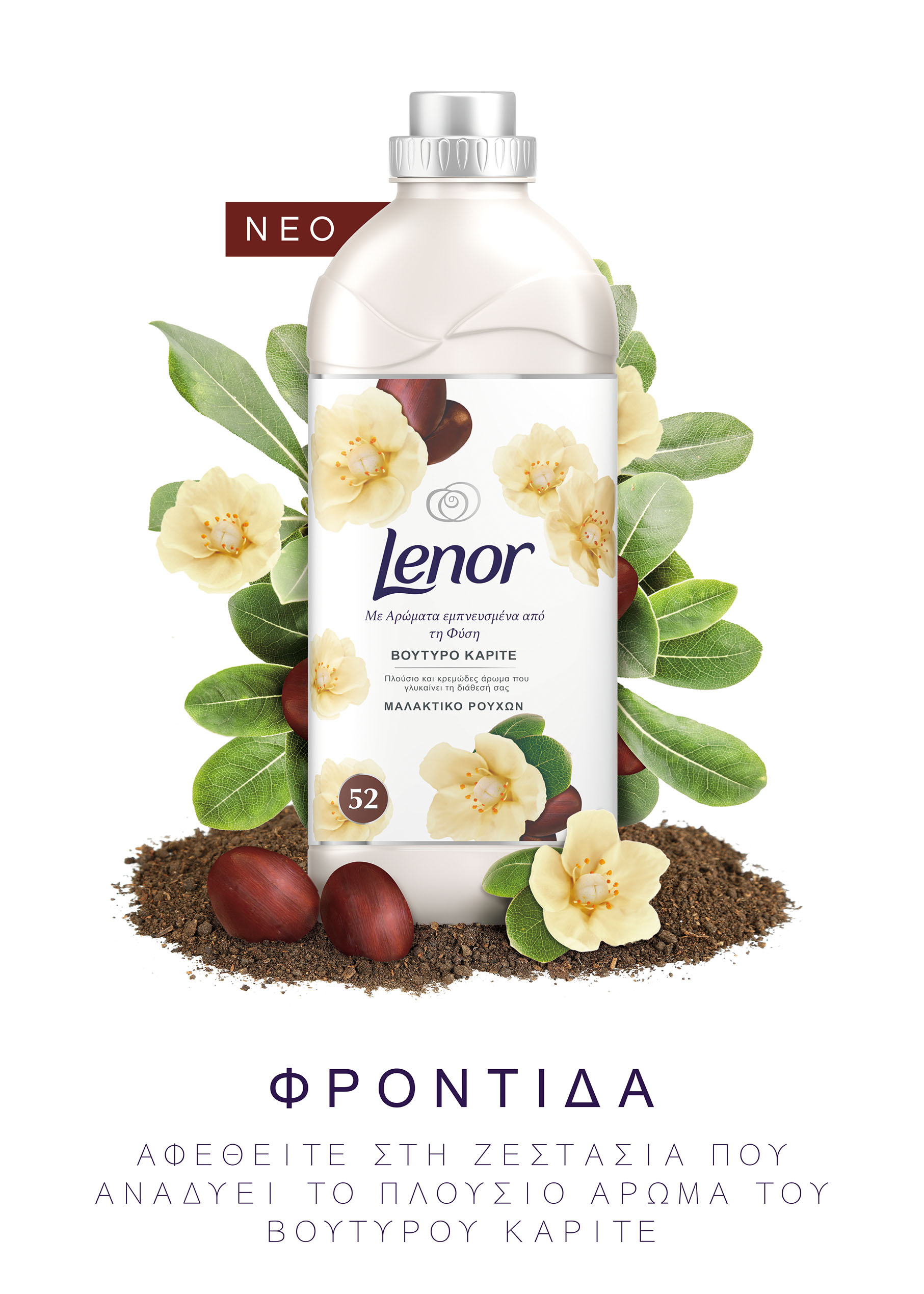 Βούτυρο καριτέ: Ένα άρωμα που αναδίδει στοργή, εμπνευσμένο από το εκχύλισμα καρπών του Αφρικανικού δέντρου Shea. Το μίγμα από τις ζεστές νότες του white musk και του κεχριμπαριού, χαρίζουν στα ρούχα βελούδινη υφή και προσδίδουν μια αίσθηση πολυτέλειας.Ο αρωματοποιός του Lenor Rafael Trujillo, λέει: «Το βούτυρο καριτέ αναδίδει μία νότα νοσταλγίας και στοργής.»