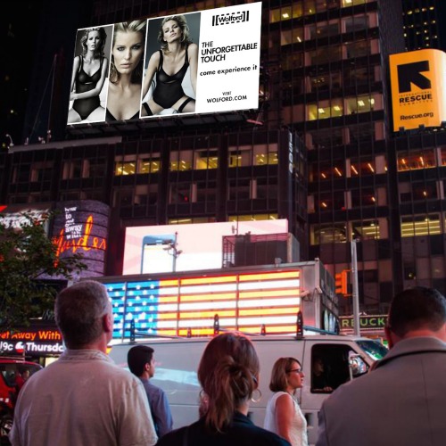 Η Wolford είναι παρούσα στα μεγαλύτερα αστικά κέντρα μόδας του κόσμου, με μεγάλες φωτεινές επιγραφές στην Αμερική, στη Γαλλία και την Ιταλία. Ήδη από την περασμένη Κυριακή, εγκαινίασε τη παρουσία της στην πλατεία Times Square, στη Νέα Υόρκη. Για τις επόμενες 7 εορταστικές εβδομάδες, θα στέκεται εκεί μια τεράστια φωτεινή επιγραφή με τις συλλεκτικές φωτογραφίες του μοντέλου και ηθοποιού Caroline Winberg, από το διάσημο φωτογράφο Mario Testino. Οι διαστάσεις της επιγραφής είναι μεγάλες όπως και η φήμη της Wolford, 22 μέτρα μήκος και 12 μέτρα ύψος. Η Wolford με το μήνυμα «UNFORGETTABLE TOUCH» προσδίδει εορταστικό ύφος σε μία από τις πιο πολυσύχναστες και πολύ-φωτογραφημένες διασταυρώσεις του κόσμου. Η επιγραφή καλεί τους περαστικούς να επισκεφθούν την ιστοσελίδα www.wolford.com και τις τοπικές Wolford boutiques για να συμμετέχουν σε διαγωνισμό με δώρα.