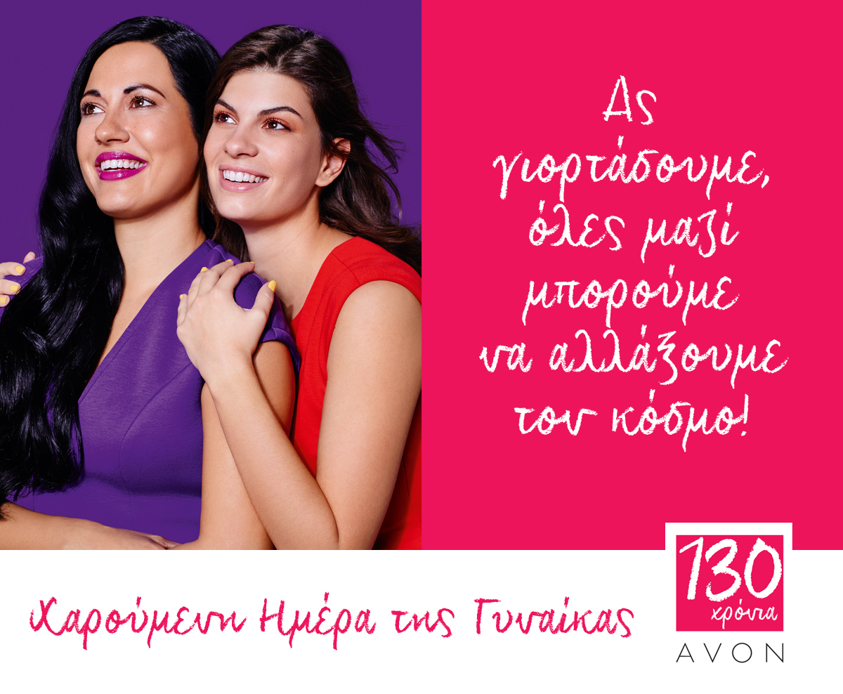 Σε εορταστικό κλίμα η Avon εύχεται χαρούμενη Παγκόσμια Ημέρα της Γυναίκας με μια λίστα τραγουδιών στο Spotify, η οποία σκοπό έχει να εμπνεύσει τις γυναίκες και να ανεβάσει τη διάθεση στα ύψη. Με μια λίστα από μοντέρνα και αγαπημένα ελληνικά και ξένα τραγούδια, η Avon γιορτάζει με τον πιο «ξεσηκωτικό» τρόπο την Παγκόσμια Ημέρα της Γυναίκας! Για την Avon κάθε μια ξεχωριστά και όλες οι γυναίκες μαζί μπορούν να αλλάξουν τον κόσμο προς το καλύτερο. Εδώ και πολλές δεκαετίες οι γυναίκες έχουν πετύχει πολλά, αναδεικνύοντας τη δυναμική τους φύση, καταφέρνοντας τα πάντα, αρκεί να το πιστέψουν.