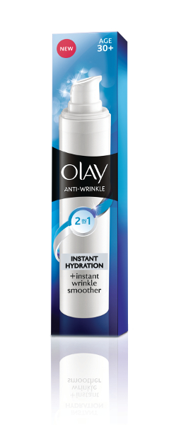 Η νέα Olay Anti-Wrinkle Instant Hydration and Instant Wrinkle Smoother είναι μια κρέμα ημέρας ειδικά σχεδιασμένη για καθημερινή χρήση που λειαίνει την εμφάνιση των λεπτών γραμμών και των ρυτίδων της επιδερμίδας. Περιέχει το μοναδικό ενυδατικό σύμπλεγμα της Olay, το οποίο προσφέρει ενυδάτωση που διαρκεί όλη την ημέρα. Εμπνευσμένη από την τεχνολογία αντανάκλασης του φωτός της Olay, η Olay Anti-Wrinkle Instant Hydration and Wrinkle Smoother περιέχει ένα ξεχωριστό μίγμα σωματιδίων που απαλύνει την υφή της επιδερμίδας, λειαίνει τις ρυτίδες και κάνει τον τόνο της επιδερμίδας πιο ομοιόμορφο. Οι βιταμίνες B3 και B5 δρουν έτσι, ώστε με τον χρόνο να αποκαθιστούν το στρώμα προστασίας της φυσικής υγρασίας της επιδερμίδας, να λειαίνουν τη δομή της και να μειώνουν την εμφάνιση των λεπτών γραμμών.