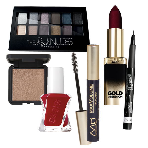 Ξεκινήστε κάνοντας ένα smokey μακιγιάζ στα μάτια σας με την παλέτα σκιών της Maybelline New York, Rock nudes (15€) και στη συνέχεια κάντε μία winged γραμμή eyeliner με το Scandal Eyes Microliner της Rimmel London. Τελειώστε το μακιγιάζ ματιών με αρκετές στρώσεις από την μάσκαρα Max Volume της MD Professionel (€9,80).