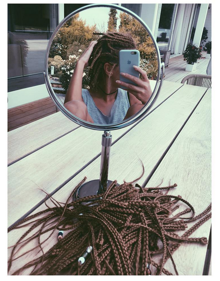 «Bye bye Ma dear braids. Πέρασε ένας μήνας χωρίς να ασχοληθώ με τα μαλλιά μου… Είχα μεγάλη ανάγκη και εγώ και αυτά να ξεκουραστούμε. Τώρα πάμε πάλι», έγραψε η ίδια μαζί με τη φωτογραφία των κομμένων της μαλλιών.