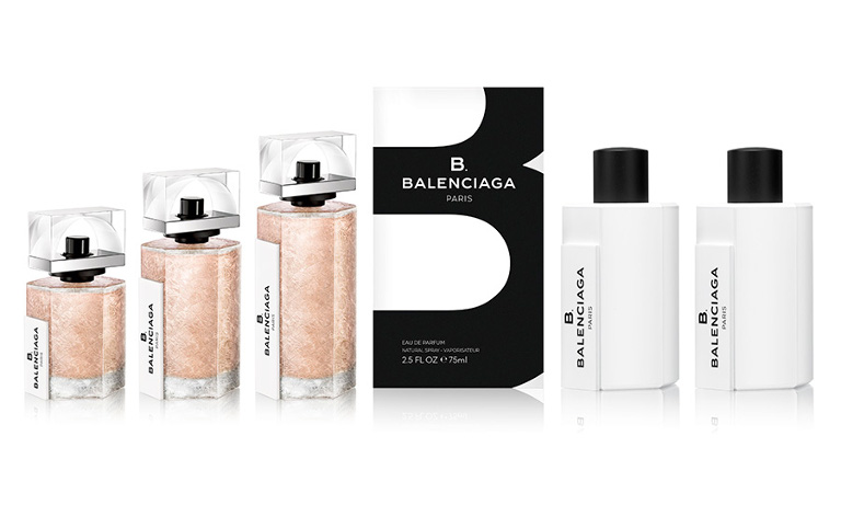 Παντρεύοντας το παλιό με το νέο, το μπουκάλι του αρώματος B. BALENCIAGA αναδεικνύει την κλασσική κληρονομιά του οίκου μόδας μέσα από μια μοντέρνα αισθητική. Η εμφάνιση του μπουκαλιού που μοιάζει σαν να βγήκε από την κατάψυξη, με μοναδικές ρωγμές, είναι εμπνευσμένη από το μαρμάρινο πλακόστρωτο της αυθεντικής Παρισινής μπουτίκ του οίκου στη διεύθυνση «Avenue George V 10». Στο σχήμα κυριαρχεί ο αρχιτεκτονικός σχεδιασμός μέσα από τις έξι πλευρές, ενώ το τόξο στο καπάκι του μπουκαλιού αναβιώνει τα τόξα που συναντούμε στις ενδυματολογικές δημιουργίες και τα αξεσουάρ του οίκου μόδας Balenciaga.