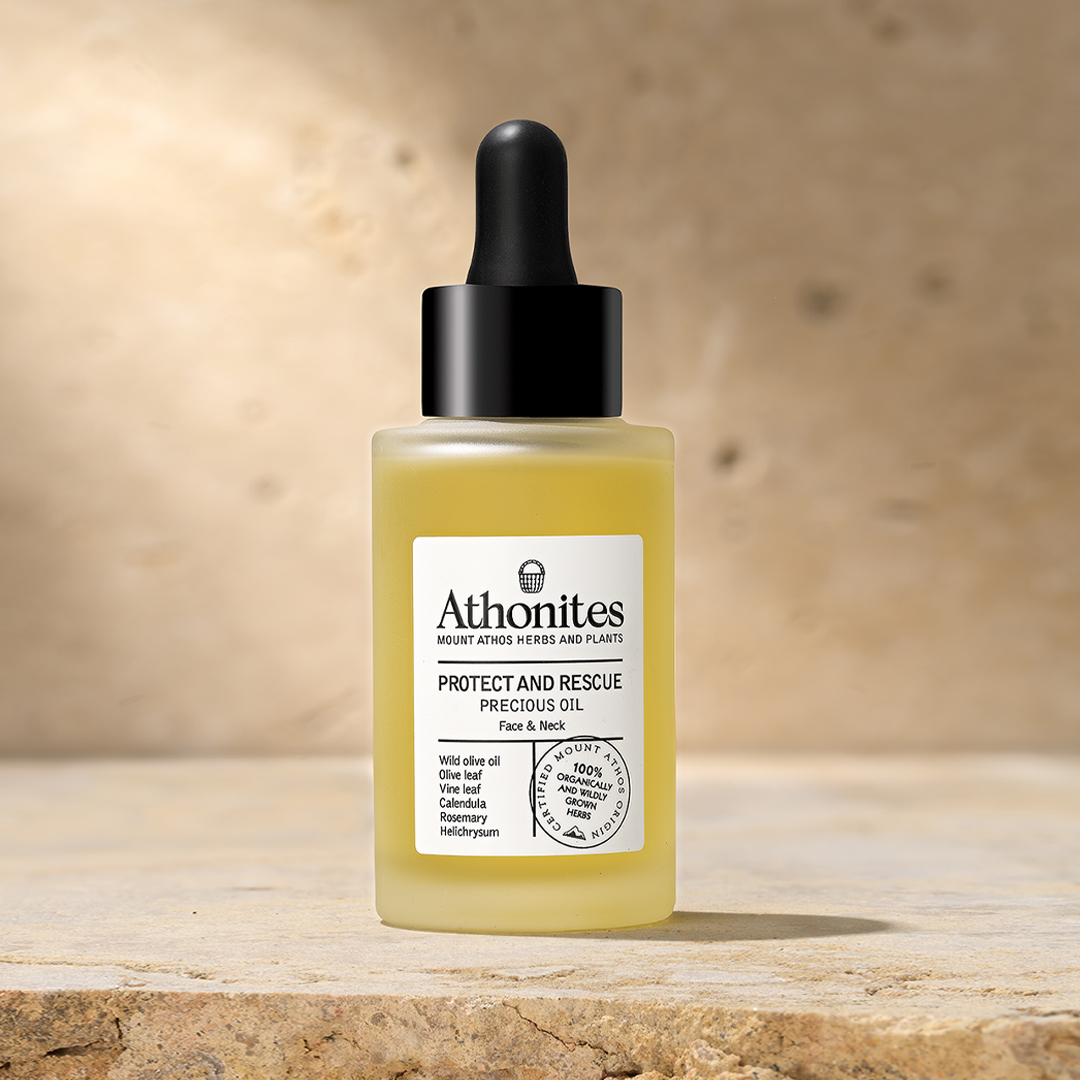 Από αυτή ακριβώς την περιοχή, το brand Athonites άντλησε την έμπνευση για το πολύτιμο έλαιο Protect & Rescue Precious Oil για το πρόσωπο και το λαιμό.