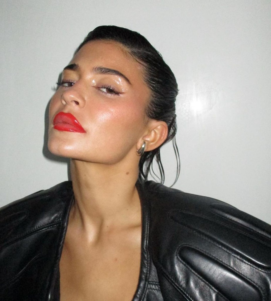 Ο makeup artist Ariel Tejada έκανε τη μεταμόρφωση της Kylie Jenner ακόμα πιο δραματική δημιουργώντας ένα έντονο cat eyeliner look. Πρόσθεσε αρκετή μάσκαρα και ολοκλήρωσε με ένα nude, glossy κραγιόν. Για τα νύχια της επέλεξε μια απαλή ροζ απόχρωση βερνικιού εξισορροπώντας το υπόλοιπο δραματικό look.