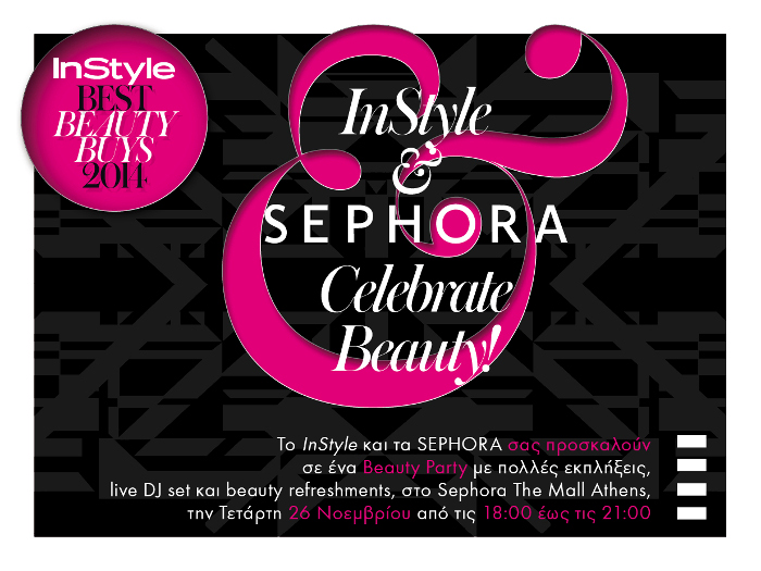 Σήμερα, 26 Νοεμβρίου από τις 18:00 ως και τις 21:00, το InStyle, τα Sephora και …οι beauty editors μας (Χριστίνα Χρόνη και Χριστίνα Ζάρδα) σας περιμένουν στα Sephora στο The Mall Athens για ένα Best Beauty Party γεμάτο εκπλήξεις, live dj set και beauty refreshments.