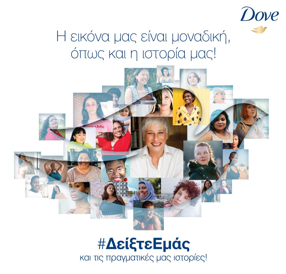 Η μάρκα Dove στο πλαίσιο της καμπάνιας #ΔείξτεΕμάς δημιούργησε την μεγαλύτερη βιβλιοθήκη φωτογραφιών παγκοσμίως, με στόχο να σπάσει τα στερεότυπα ομορφιάς, να δείξει τον αληθινό μας εαυτό και να συμβάλλει ενεργά στην αυθεντική απεικόνιση των γυναικών στα ΜΜΕ και τη διαφήμιση. Η συλλογή που δημιουργήθηκε από γυναίκες περιλαμβάνει περισσότερες από 5.000 φωτογραφίες από 39 χώρες και συνεχίζει. Χωρίς ψηφιακή παραμόρφωση, απλά η αληθινή ομορφιά, που δεν αποκλείει κανέναν.