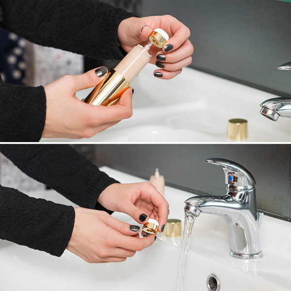 Ξέρω τι σκέφτεστε τώρα – το σφουγγαράκι θα μπορούσε κάλλιστα να γίνει πηγή μικροβίων, όπως ακριβώς κάνουν τα πινέλα αν δεν τα πλένουμε συχνά, με αποτέλεσμα να εμφανίζουμε σπυράκια και άλλου είδους ατέλειες. Μη βιάζεστε όμως, γιατί αυτό το απλικατέρ αφαιρείται πανεύκολα: στρίβετε το μεταλλικό δαχτυλίδι στην κορυφή για να το βγάλετε, το πλένετε με χλιαρό νερό και ένα απαλό σαπούνι και το αφήνετε να στεγνώσει τελείως πριν το τοποθετήσετε πάλι στην συσκευασία. Voila! Το δικό μου πλύθηκε και είναι πάλι έτοιμο για χρήση. Promise, δεν μου πήρε πάνω από δύο λεπτά η όλη διαδικασία.
