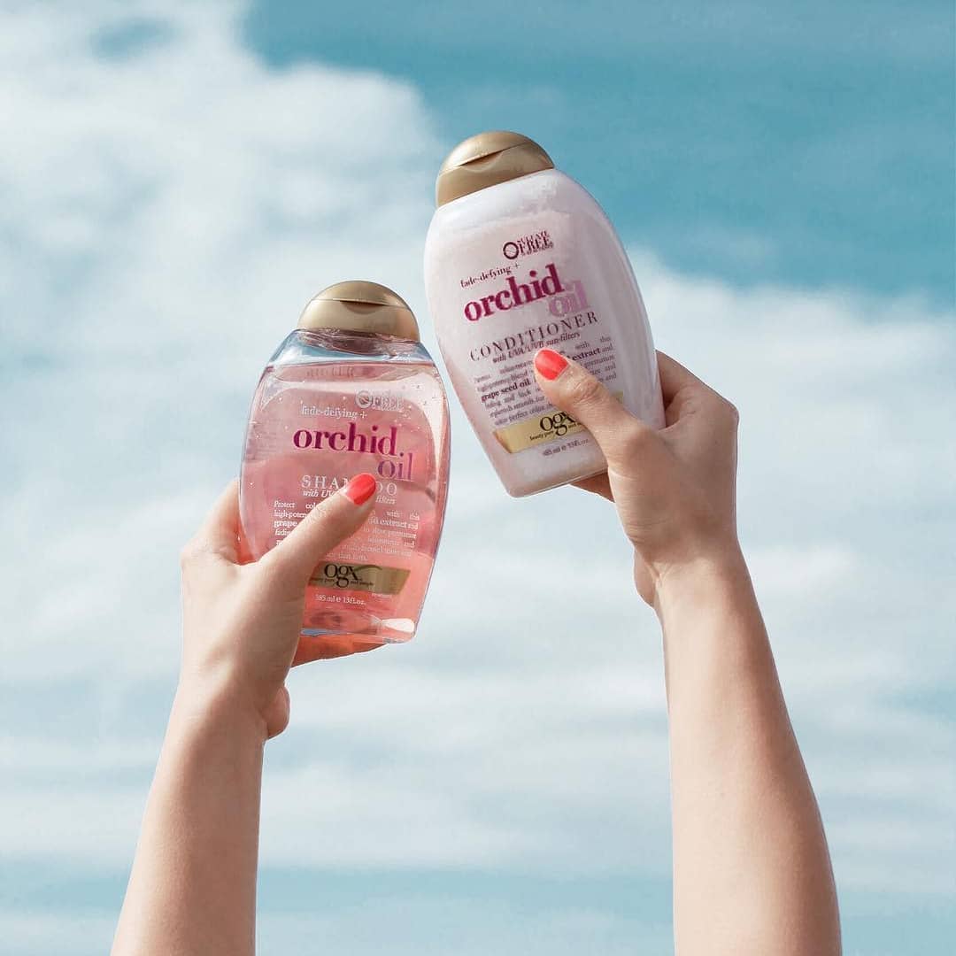 Η νέα σειρά OGX Oil Orchid, εμπεριέχει ένα εξωτικό μείγμα από λάδι ορχιδέας, εκχύλισμα ορχιδέας, λάδι από σπόρους σταφυλιών και φίλτρα υψηλής προστασίας UVA/UVB, για την ενίσχυση και προστασία των βαμμένων μαλλιών. Αυτός ο ανάλαφρος συνδυασμός ενυδατικών συστατικών και φίλτρων υψηλής προστασίας UVA/UVB, χωρίς θεϊκά άλατα, προλαμβάνει το πρόωρο ξεθώριασμα της βαμμένης τρίχας και κλειδώνει το χρώμα, για έντονο αποτέλεσμα που διαρκεί. Παράλληλα, ενυδατώνει και εμπλουτίζει την τρίχα, κάνοντας τα μαλλιά σου να μοιάζουν σαν να βγήκες μόλις από το κομμωτήριο!