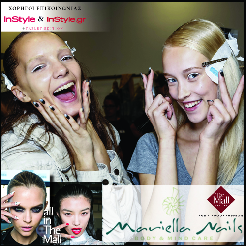 Την Tετάρτη 12 Μαρτίου από τις 17-20:00 ένα μοναδικό nail bar θα σας περιμένει στο stage του InStyle στον 3ο οροφο του The Mall Athens (απέναντι από τα Haagen Dazs & διαγώνια από την είσοδο των Village Cinemas). Οι ειδικοί των Mariella Νails θα σας περιμένουν για να δώσουν τέλειο χρώμα στα νύχια σας ή –γιατί όχι- ένα εντυπωσιακό nail art. Το μόνο που έχετε να κάνετε είναι να πάρετε την καλύτερή σας φίλη και να περάσετε από το απίθανο InStyle «Beauty Salon Booth», εμείς και τα Mariella Nails θα αναλάβουμε τα υπόλοιπα.