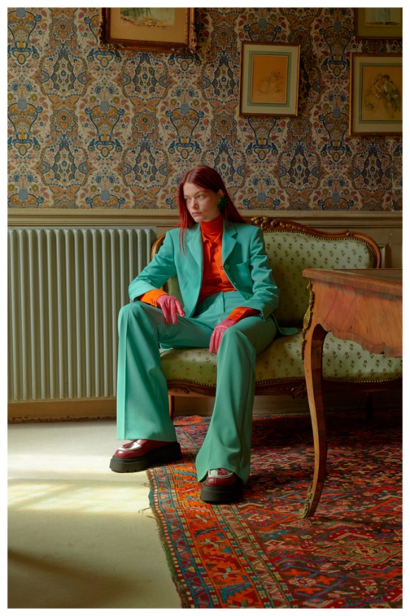 Οι υφές ερευνώνται, ενώ τα μοτίβα επανεξετάζονται μέσα από τα αναμνηστικά, που συλλέγονται στην ζεστασιά του ζωντανού σπιτικού της Glam-ma: από την κιτς απλότητα, στις ρετρό λουλουδένιες κουρτίνες της, μέχρι τα χαρούμενα χαλιά από ζακάρ. Μια παλέτα από απαλό πράσινο, αποχρώσεις της μέντας, κίτρινο της μιμόζας, γαλάζιο και ανοιχτό ροζ, σε συνδυασμό με δερμάτινες γήινες αποχρώσεις και εντυπωσιακούς τόνους του μπλε και του μαύρου, που μεταφέρουν έναν ζωντανό διάλογο χρωμάτων.