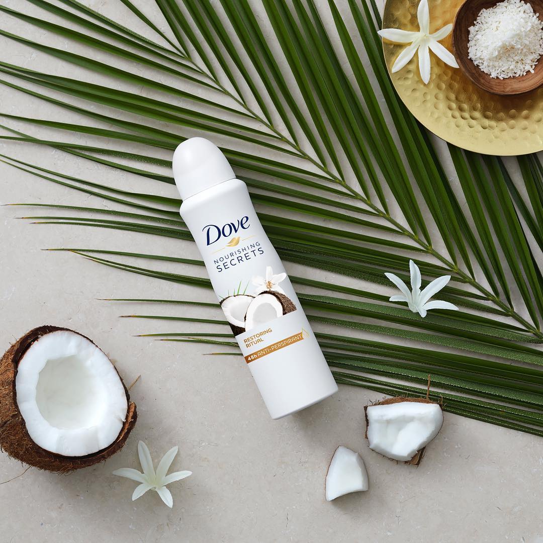 Τώρα, μέσα από το νέο αποσμητικό σώματος της σειράς σε μορφή spray και roll-on, το κρεμοσάπουνο σε μορφή αντλίας και το ανταλλακτικό του όπως και την κρέμα χεριών με απαλή υφή της σειράς Dove Restoring Rituals με έλαιο καρύδας και γάλα αμυγδάλου, ξεκλειδώνεις και εσύ τα μυστικά ομορφιάς των γυναικών της Ινδίας και ζεις μια εμπειρία περιποίησης που σαγηνεύει τις αισθήσεις σου.