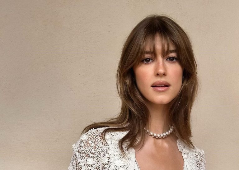 Παρόλο που το κούρεμα είναι αρκετά έντονο, το sleek look της Greta Lee δημιουργεί μια ρομαντική και όμορφη εμφάνιση.