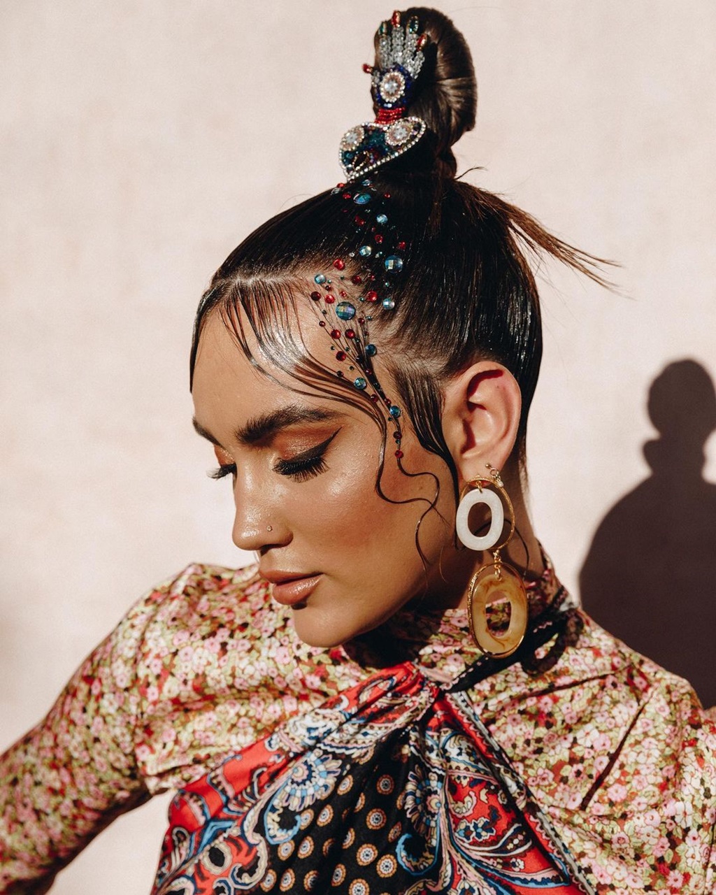 Αυτό για αν θέλετε να κάνετε το look πιο bold! Δημιουργήστε ένα πολύ slick χτένισμα και τοποθετήστε τα gems σε μια σειρά, η οποία θα καταλήγει στο πρόσωπό σας.