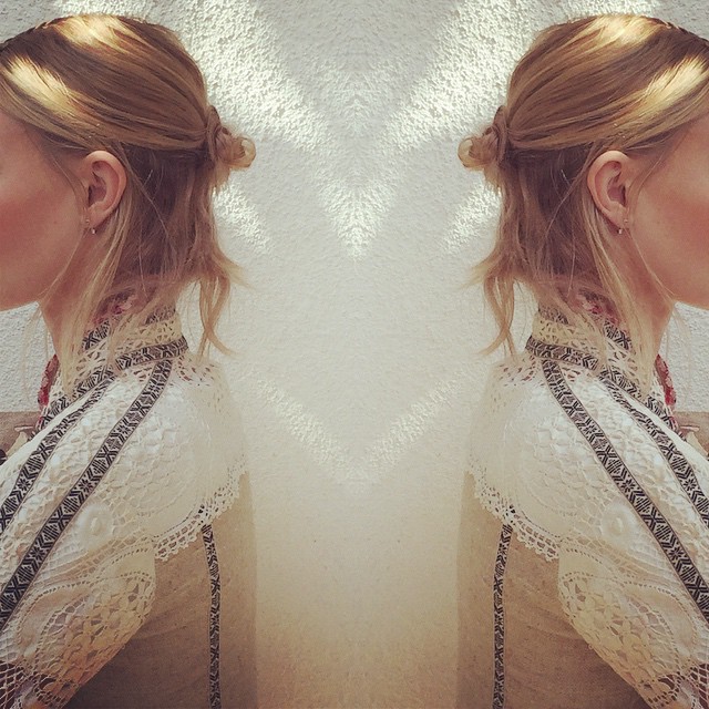 Τα υπόλοιπα μαλλιά της, τα οποία να σημειωθεί πως είναι κομμένα σε ένα μεσαίο καρέ, είναι πιασμένα μισά μισά με έναν ατημέλητο κότσο ολοκληρώνοντας το χτένισμα μοναδικά. Μισό λεπτό όμως… Κάπου έχουμε ξαναδεί αυτή την χωρίστρα-κοτσίδα…