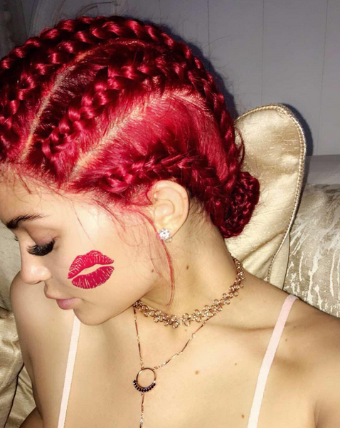Την έχουμε δει με πράσινα μαλλιά, με ξανθά, με μαύρα και τώρα και με κόκκινα. Ο λόγος για την μικρότερη από τις Kardashians, η οποία χθες έγινε 19 ετών. Φυσικά τα γενέθλια της Kylie δεν θα μπορούσαν να εορταστούν με κάτι λιγότερο από μία ακόμα αλλαγή στην εικόνα της. Αυτή τη φορά, επέλεξε να εμφανιστεί με έντονα κόκκινα μαλλιά, τα οποία είχε χτενίσει σε πολύ σφιχτά, μικρά κοτσιδάκια, aka τα cornrows.