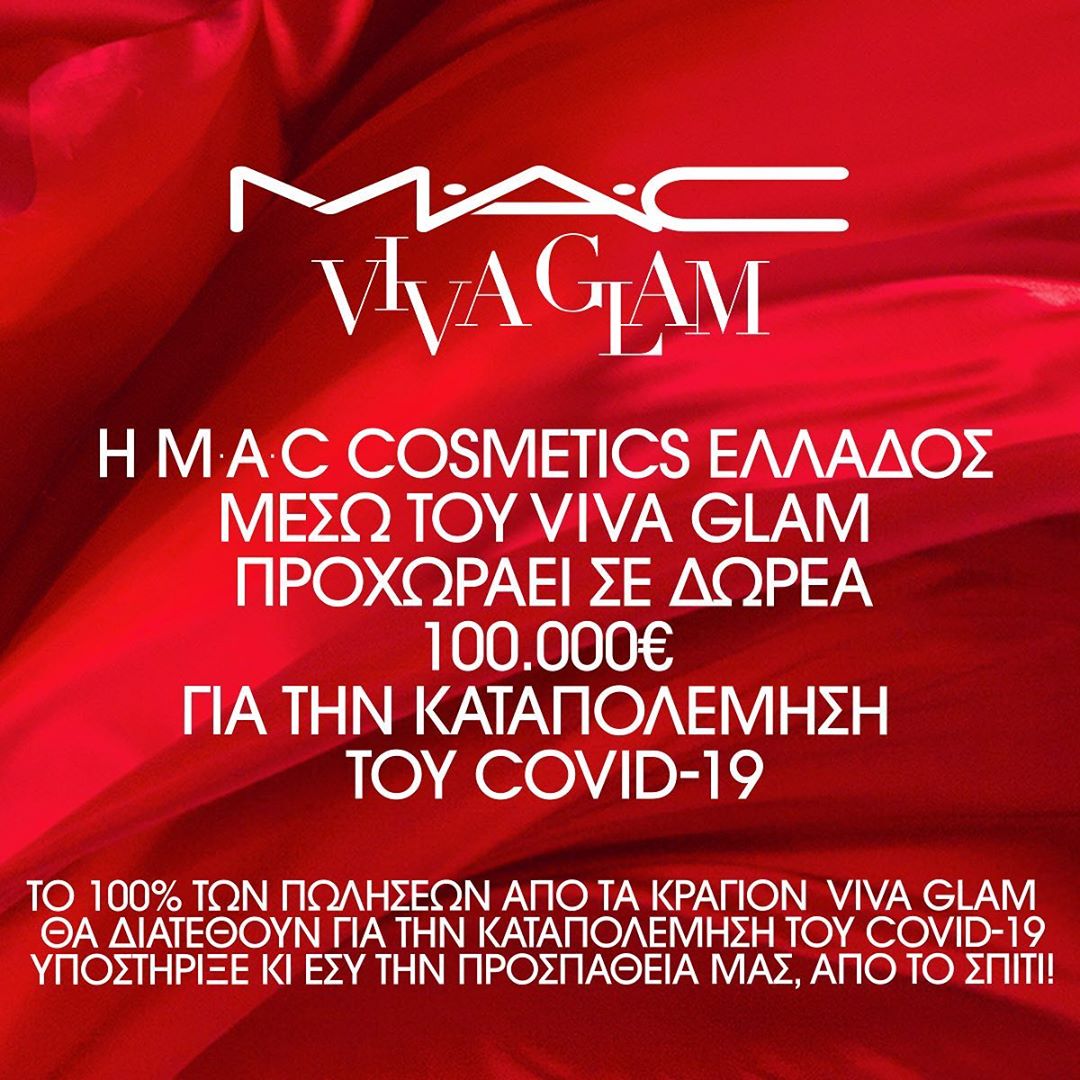 Η M·A·C Cosmetics ανακοινώνει ότι μέσω της μακροχρόνιας πρωτοβουλίας της, VIVA GLAM, η οποία υποστηρίζει οργανισμούς και δράσεις που παρέχουν βοήθεια και υπηρεσίες σε βασικές ανάγκες ευπαθών ομάδων πληθυσμού, προσφέρει 10 εκατομμύρια δολάρια σε πάνω από 250 τοπικούς οργανισμούς παγκοσμίως, οι οποίοι βρίσκονται στην πρώτη γραμμή βοηθώντας ανθρώπους που βρίσκονται σε υψηλό κίνδυνο, κατά τη διάρκεια της πανδημίας του COVID-19.